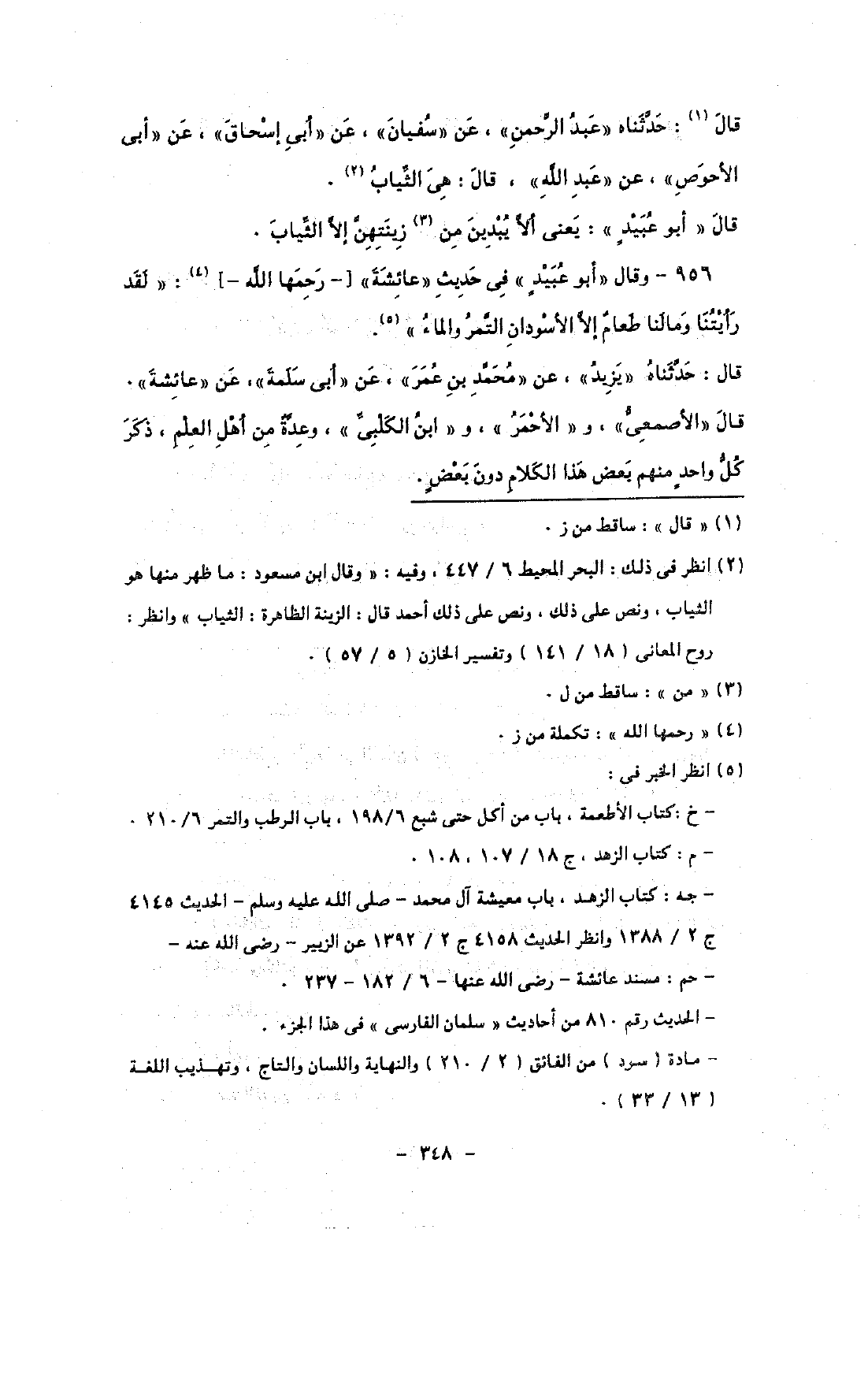 956 - وقال «أبو عبيد» فى حديث «عائشة» [- رحمها الله -]: «لقد رأيتنا ومالنا طعام إلا الأسودان التمر والماء».