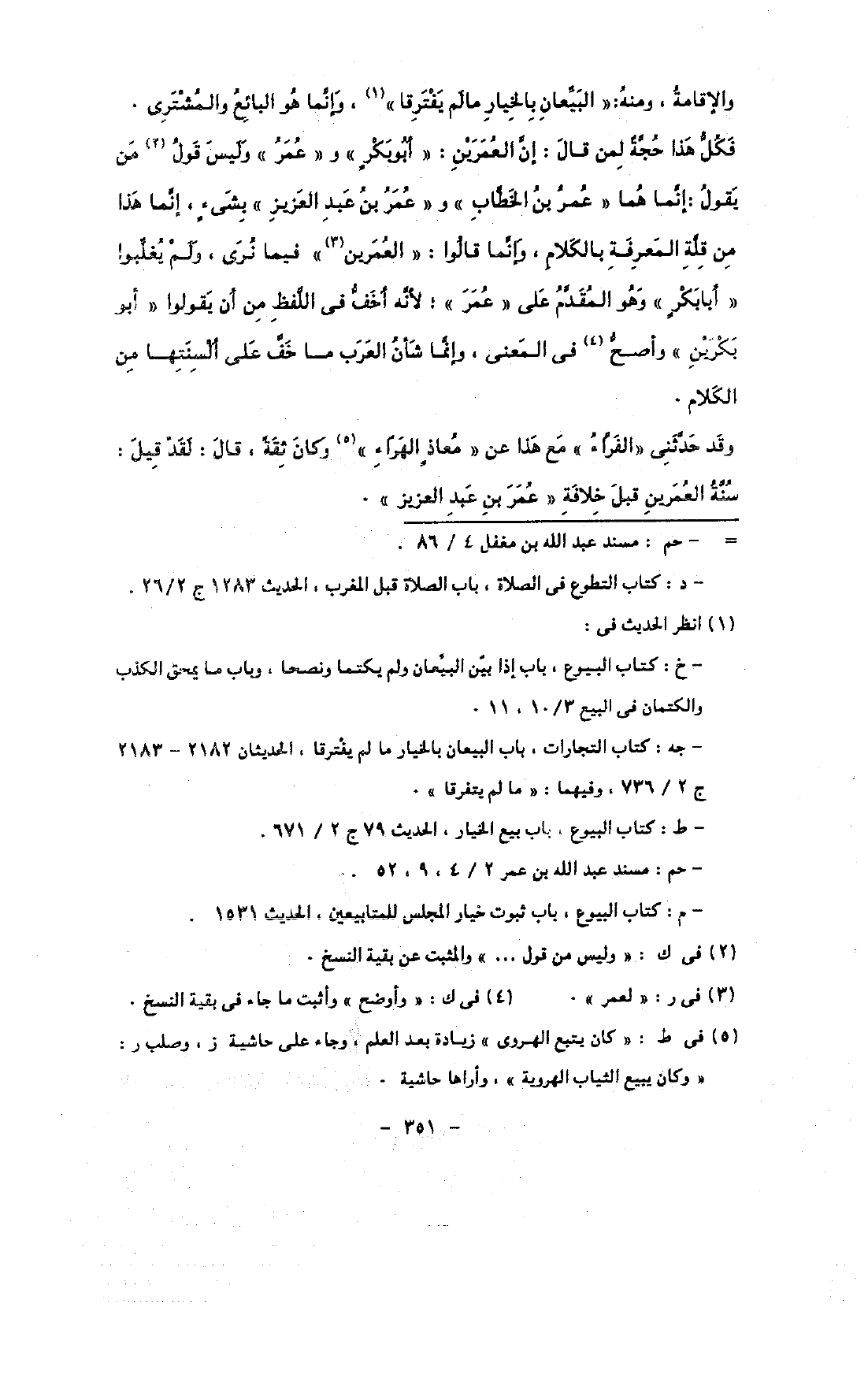 قكل هذا حجة لمن قال: إن العمرين: «أبو بكر» و «عمر» وليس قول من يقول: إنما هما «عمر بن الخطاب» و «عمر بن عبد العزيز» بشئ, إنما هذا من قلة المعرفة بالكلام, وإنما قالوا: «العمرين» فيما نرى, ولم يغلبوا «أبا بكر» وهو المقدم على «عمر» , لأنه أخف فى اللفظ من أن يقولوا «أبو يكرين» واصح فى المعنى, وإنما شأن العرب ما خف على ألسنتها من الكلام.