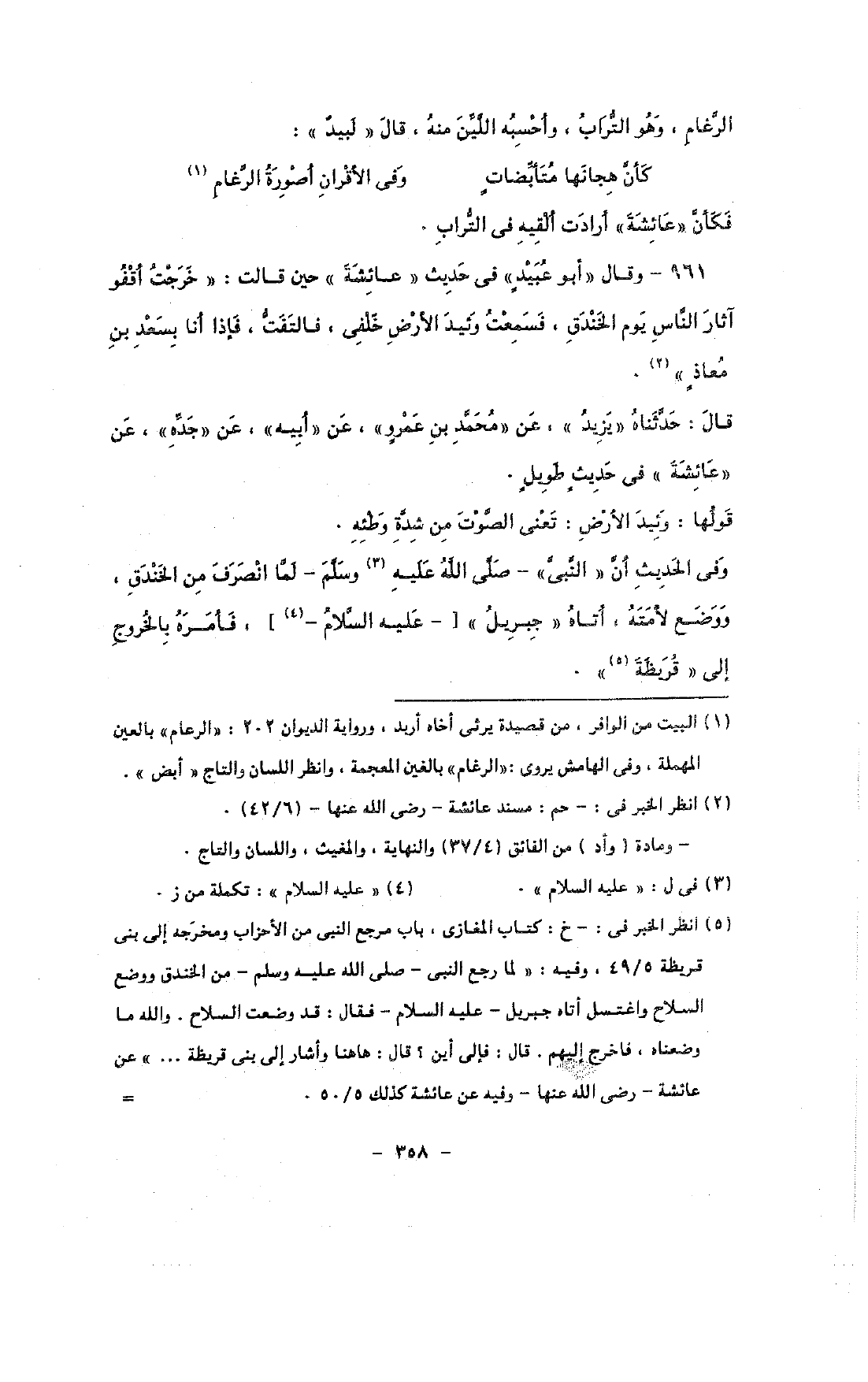 961 - وقال «أبو عبيد» فى حديث «عائشة» حين قالت: «خرجت أقفو آثار الناس يوم الخندق, فسمعت وئيد الأرض خلفى, فالتقت, فإذا أنا يسعد بن معاذ».