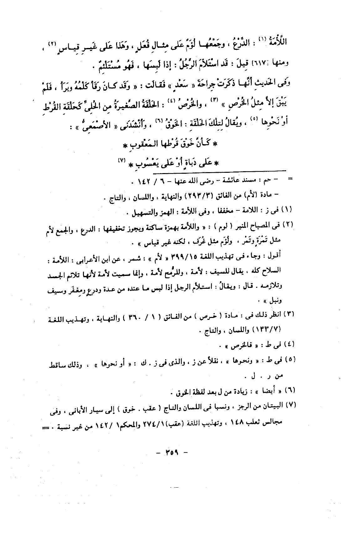 اللأمة: الدرع, وجمعها لؤم على مثال فعل, وهذا على غير قياس, ومنها [617] قيل: قد استلام الرجل: إذا لبسها, فهو مستلئم.