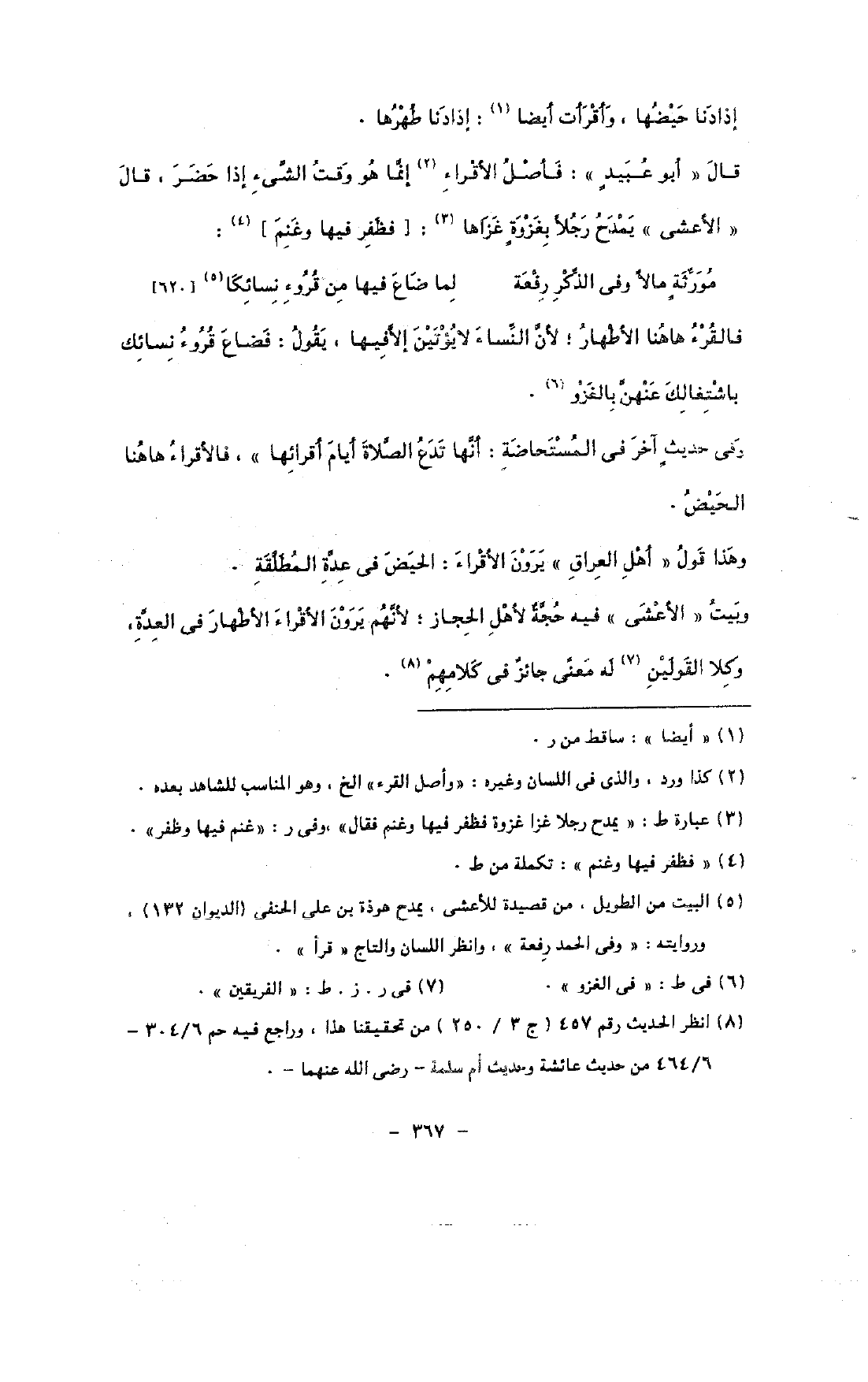 قال «أبو عبيد»: فأصل الأقراء إنما هو وقت الشئ إذا حضر, قال «الأعشى» يمدح رجلًا بغزوة غزاها: [فظفر فيها وغنم]: