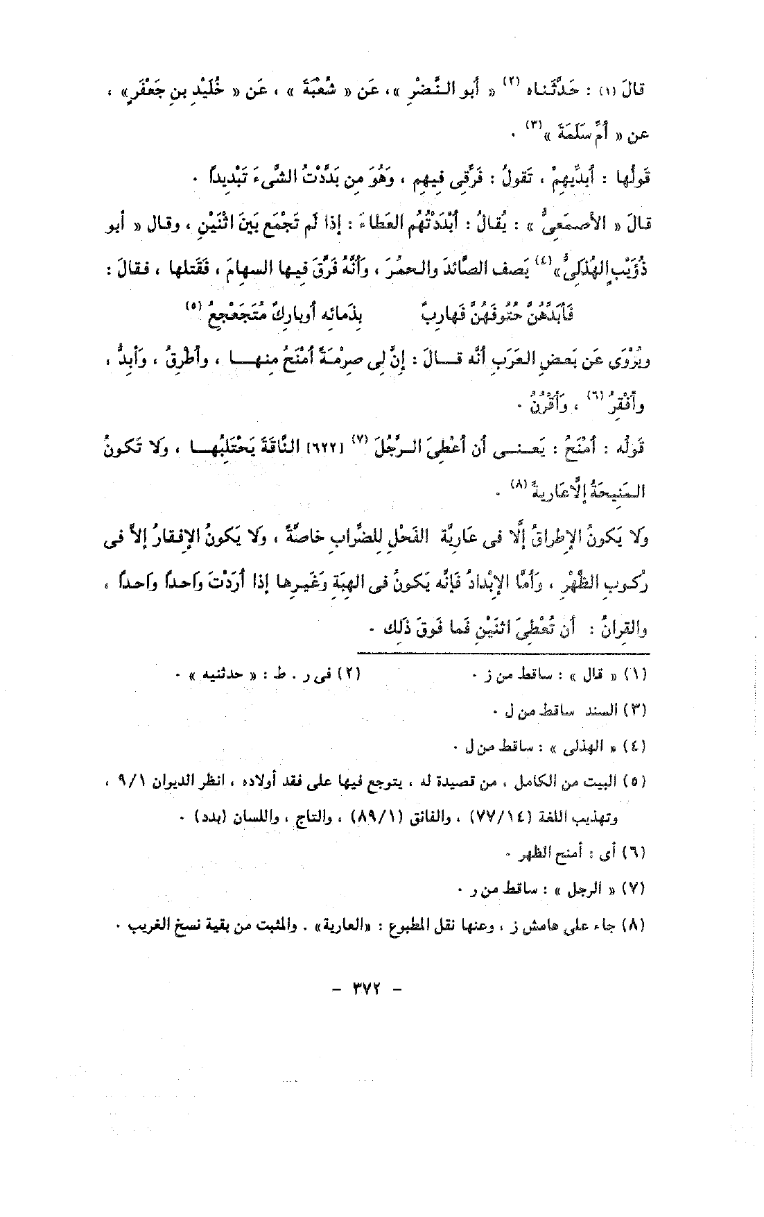ولا يكون الإطراق إلا فى عارية الفحل للضراب خاصة, ولا يكون الإفقار إلا فى ركوب الظهر, وأما الإبداد فإنه يكون فى الهبة وغيرها إذا أردت واحدًا واحدًا, والقران: أن تعطى اثنين فما فوق ذلك.