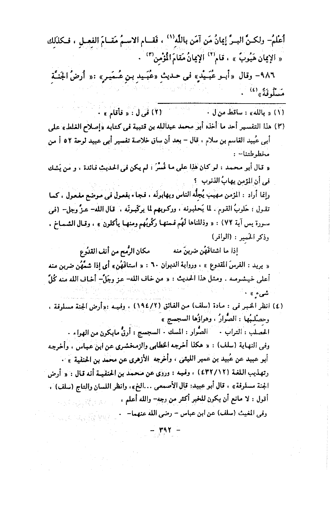 986 - وقال «أبو عبيد» فى حديث «عبيد بن عمير»: «أرض الجنة مسلوفة».