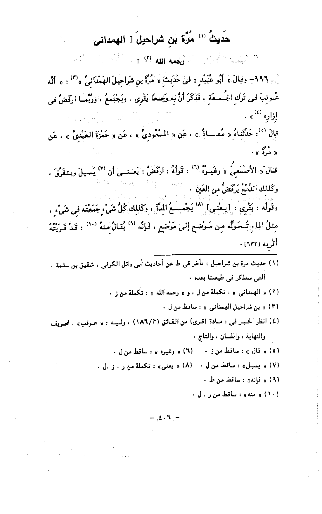 حديث مرة بن شراحيل [الهمدانى رحمه الله]