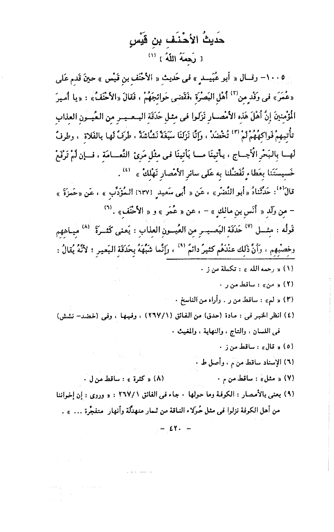 قال: حدثناه «أبو النضر» , عن «أبى سعيد [637] المؤدب» , عن «حمزة» - من ولد «أنس بن مالك» -, عن «عمر» و «الأحنف».