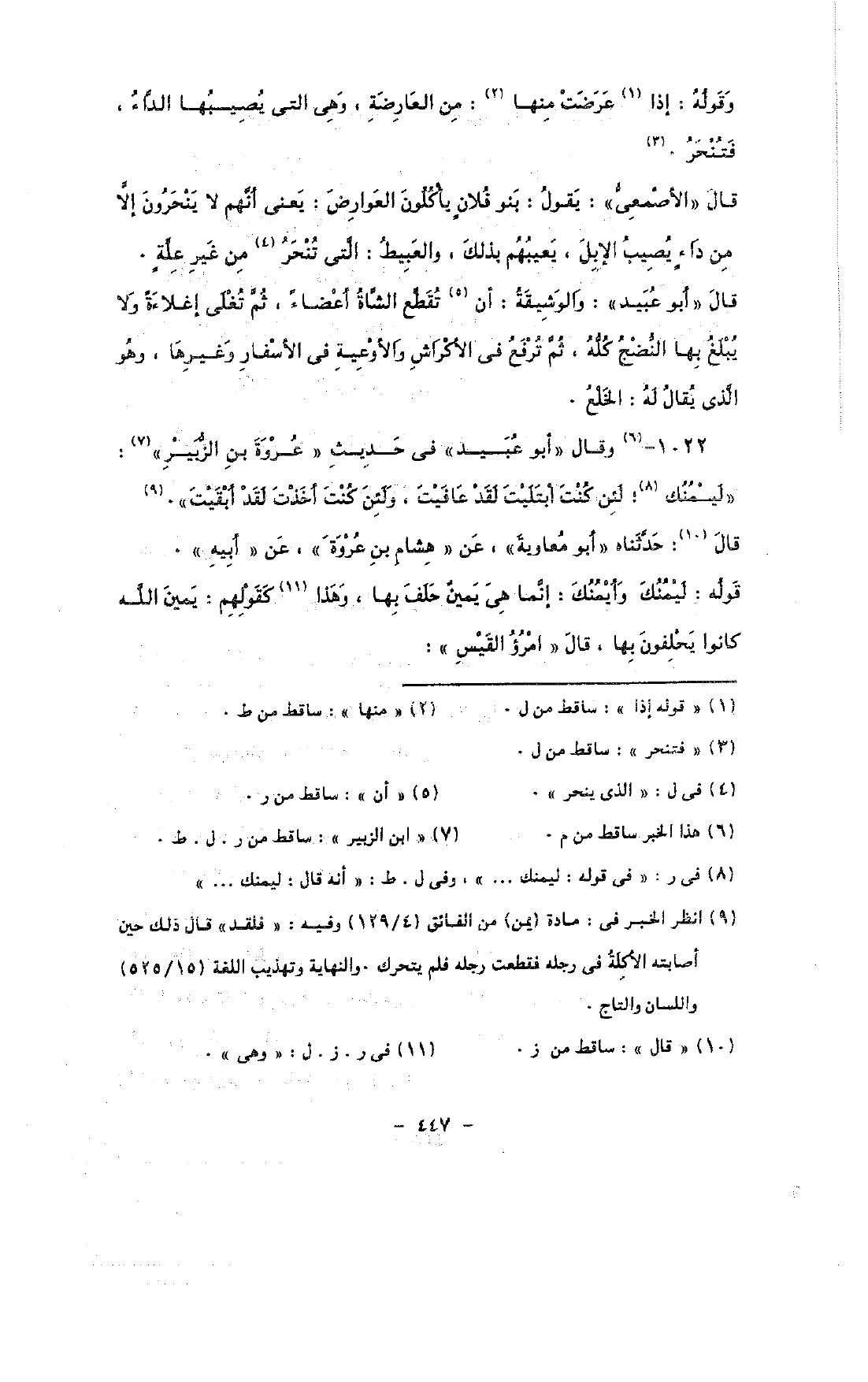 قال «الأصمعى»: يقول: بنو فلان يأكلون العوارض: يعنى أنهم لا ينحرون إلا من داء يصيب الإبل, يعيبهم بذلك, والعبيط: التى تنحر من غير علة.
