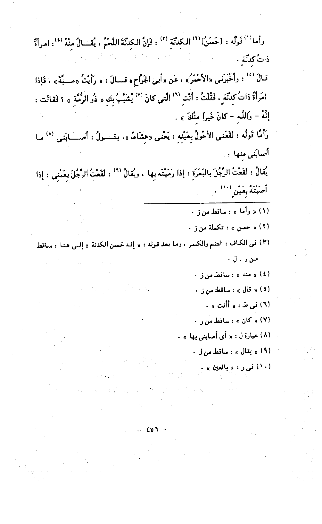 وأما قوله: لقعنى الأحول بعينه: يعنى «هشامًا» ,] قول: أصابنى ما أصابنى منها.
