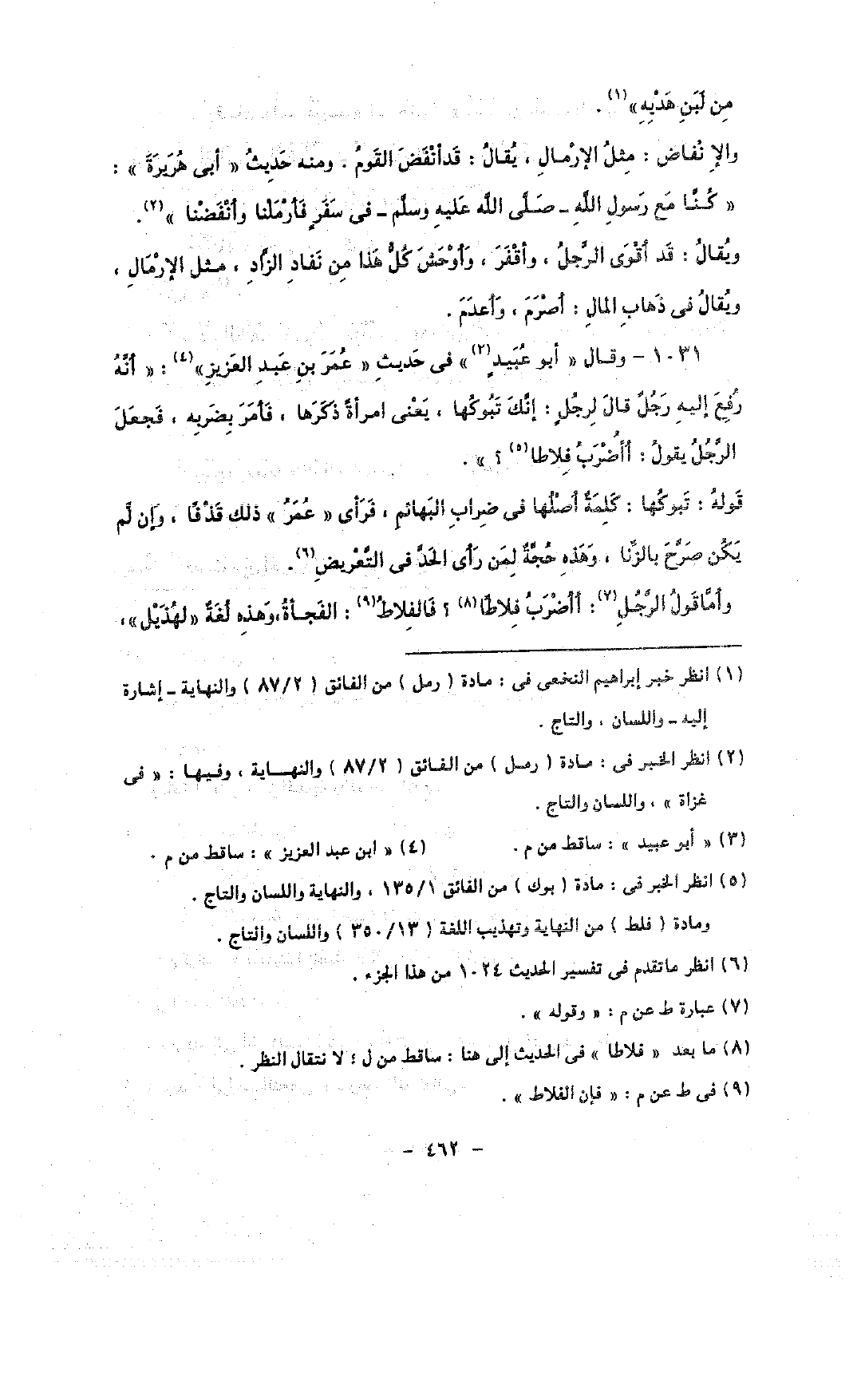 1031 - وقال «أبو عبيد» فى حديث «عمر بن عبد العزيز»: «أنه رفع إليه رجل قال لرجل: إنك تبوكها, يعنى امرأة ذكرها, فأمبر بضربه, فجعل الرجل يقول: أأضرب فلاطا؟ ».