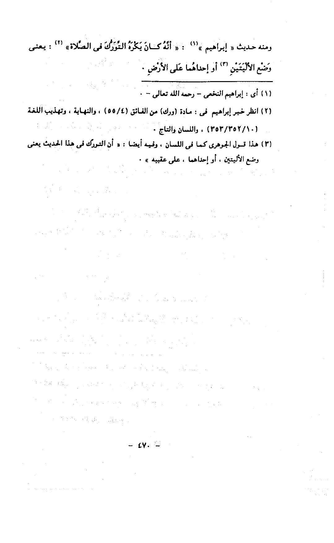 ومنه حديث «إبراهيم»: «أنه كان يكره التورك فى الصلاة»: يعنى وضع الأليتين أو إحداهما على الأرض.