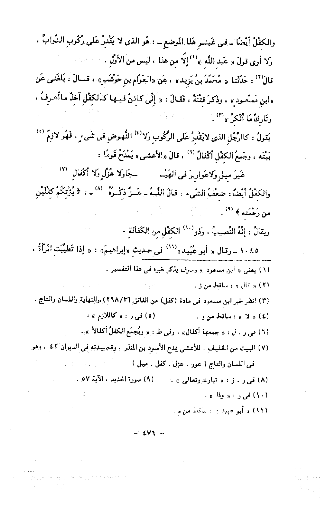 قال: حدثنا «محمد بن يزيد» , عن «العوام بن حوشب» , قال: بلغنى عن «ابن مسعود» , وذكر فتنة, فقال: «إنى كائن فيها كالكفل آخذ ما أعرف, وتارك ما أنكر».