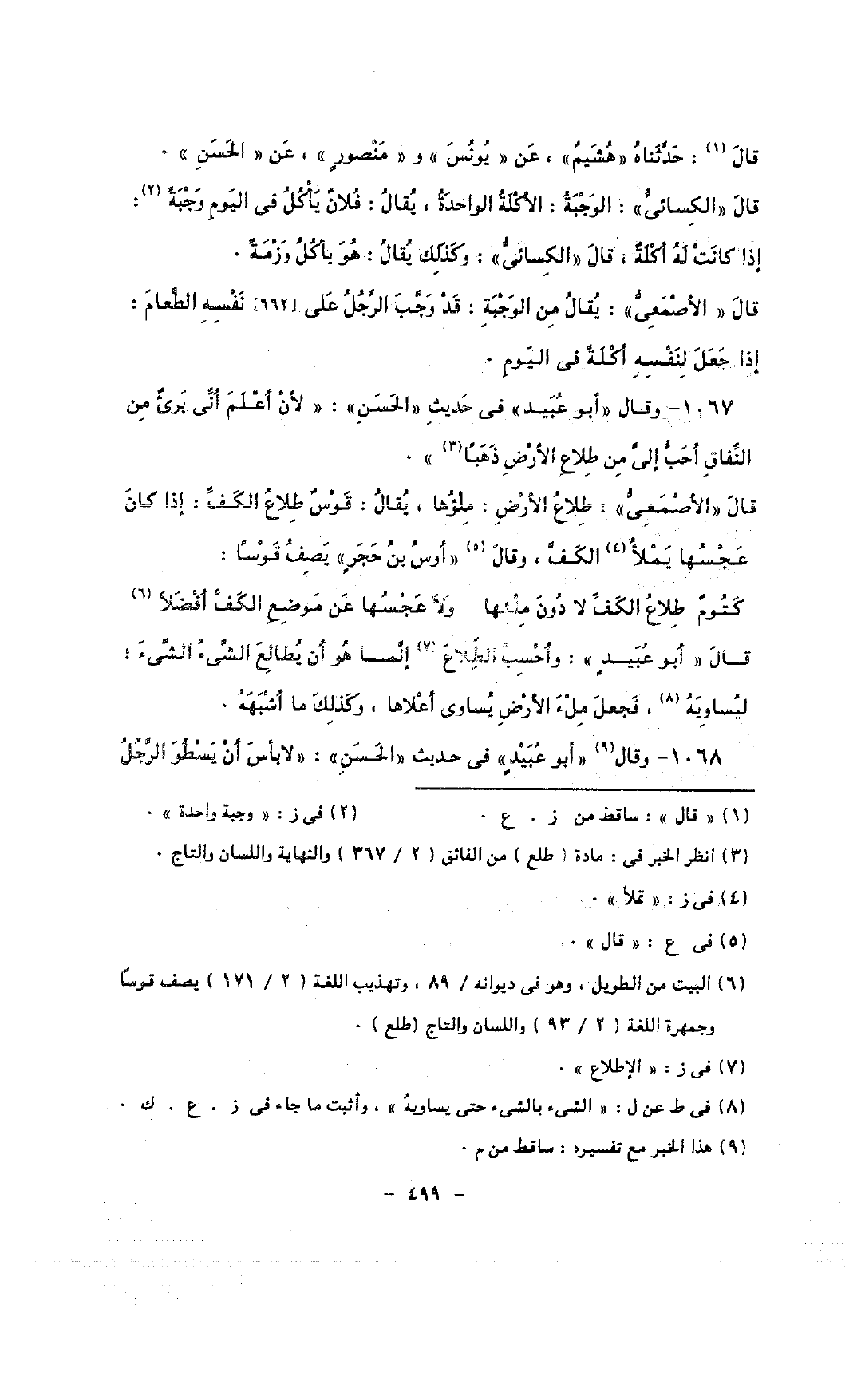 1067 - وقال «أبو عبيد» فى حديث «الحسن»: «لأن أعلم أنى برئ من النفاق أحب إلى من طلاع الأرض ذهبًا».