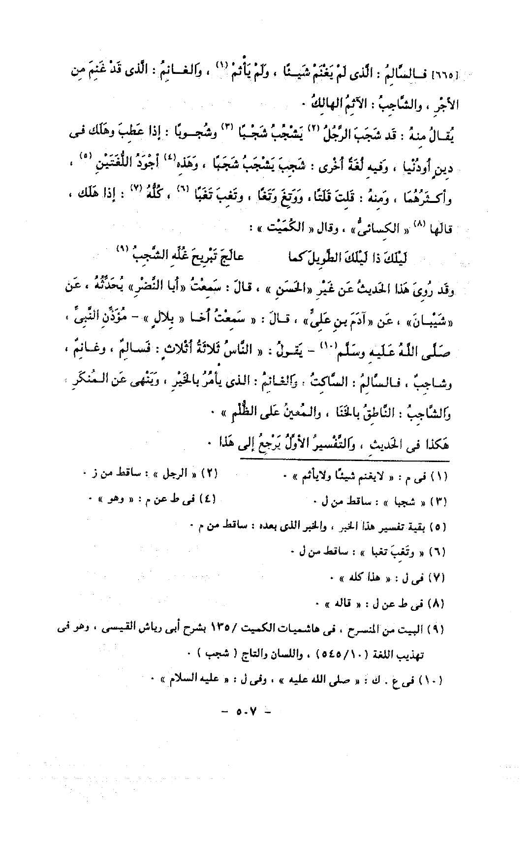 وقد روى هذا الحديث عن غير «الحسن» , قال: سمعت «أبا النضر» يحدثه, عن «شيبان» , عن «آدم بن على» , قال: «سمعت أخا «بلال» - مؤذن النبى, صلى الله عليه وسلم - يقول: «الناس ثلاثة أثلاث: فسالم, وغانم, وشاجب, فالسالم: الساكت, والغانم: الذى يأمر بالخير, وينهى عن المنكر, والشاجب: الناطق بالخنا, والمعين على الظلم».