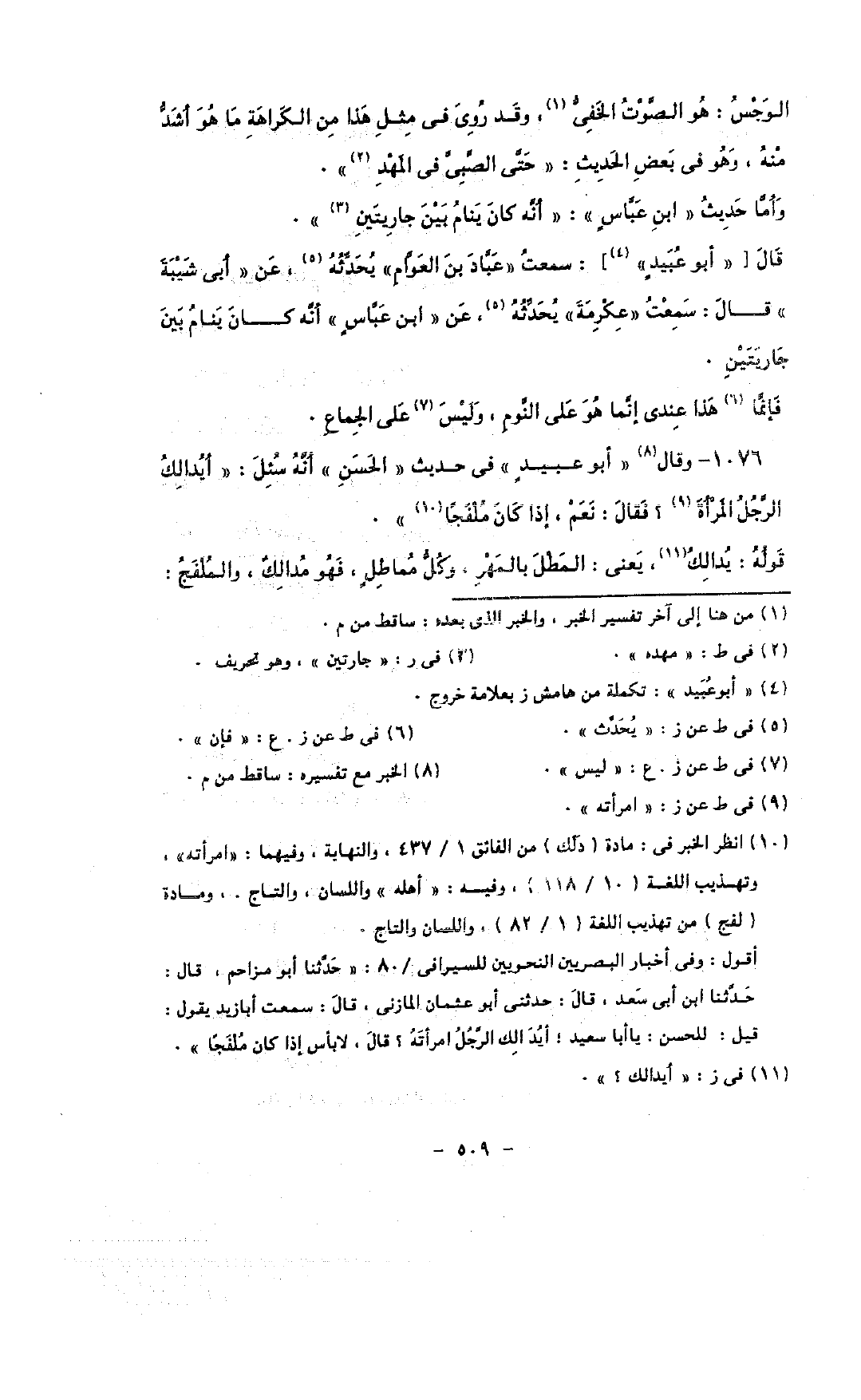 قال [«أبو عبيد»]: سمعت «عباد بن العوام» يحدثه, عن «أبى شيبة» قال: سمعت «عكرمة» يحدثه, عن «ابن عباس» أنه كان ينام بين جاريتين.