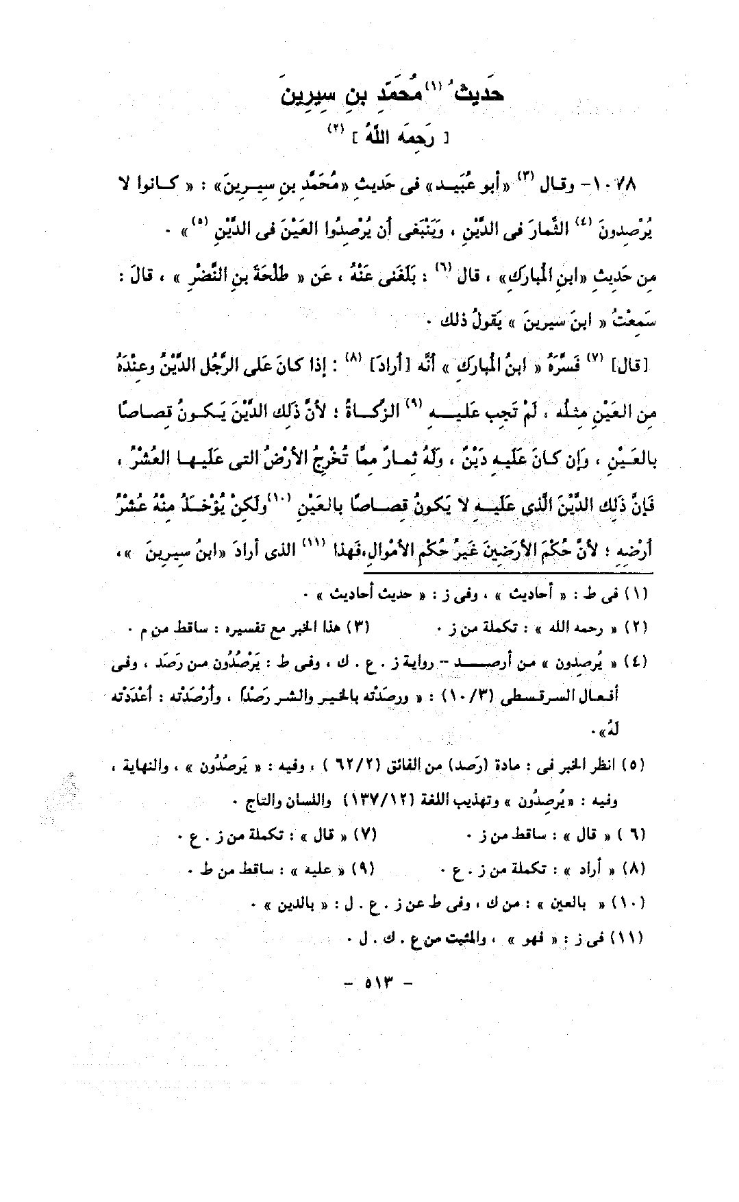 من حديث «ابن المبارك» , قال: بلغنى عنه, عن «طلحة بن النضر» , قال: سمعت «ابن سيرين» يقول ذلك.