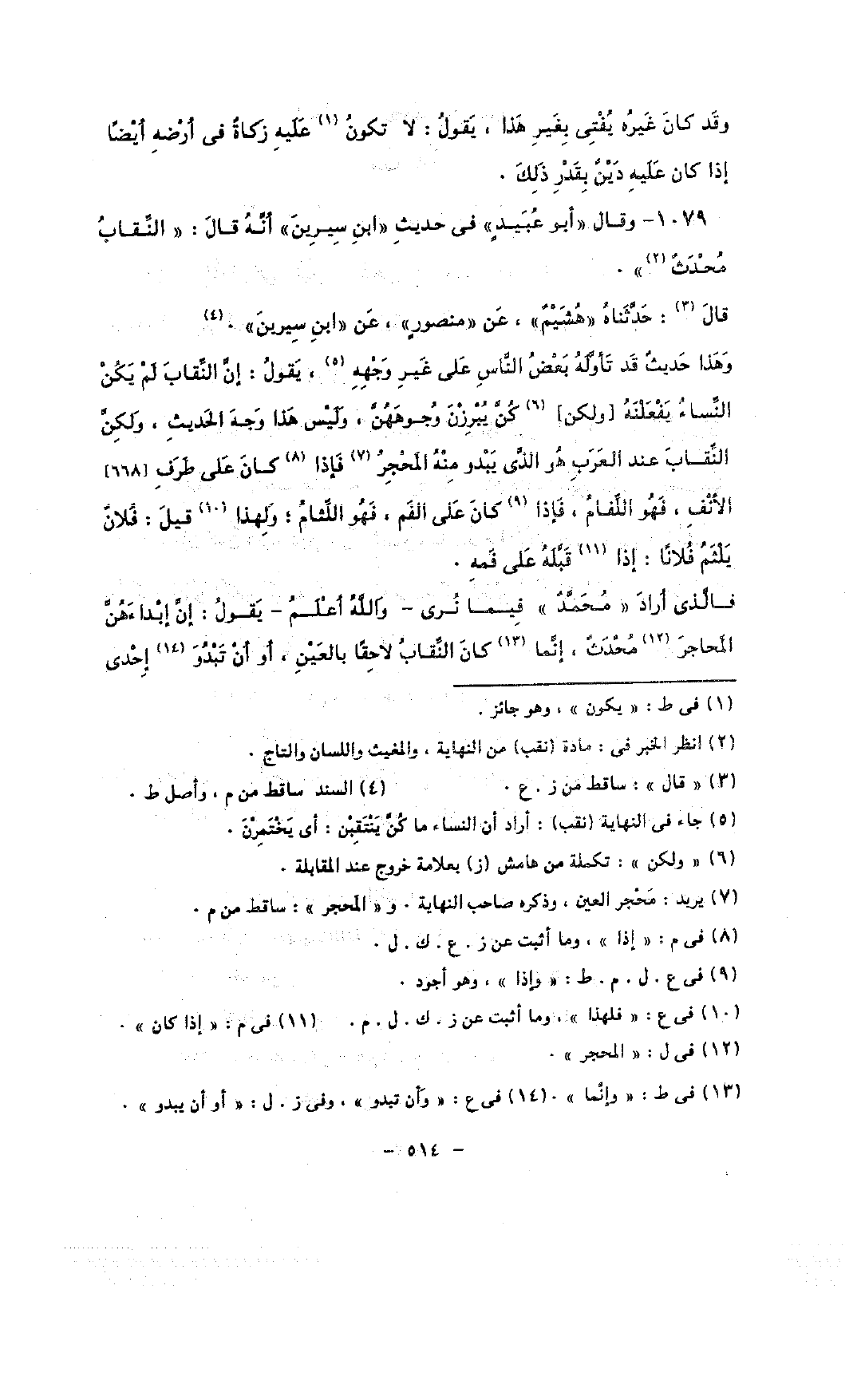 1079 - وقال «أبو عبيد» فى حديث «ابن سيرين» أنه قال: «النقاب محدث».
