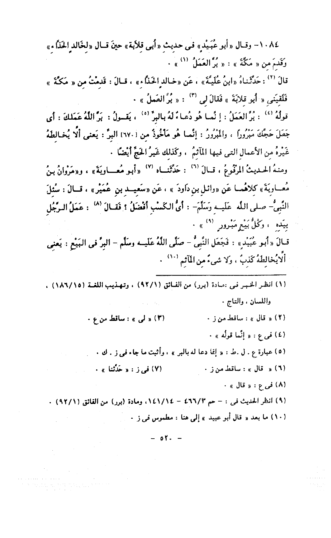 1084 - وقال «أبو عبيد» فى حديث «أبى قلابة» حين قال «لخالد الحذاء» وقدم من «مكة»: «بر العمل».