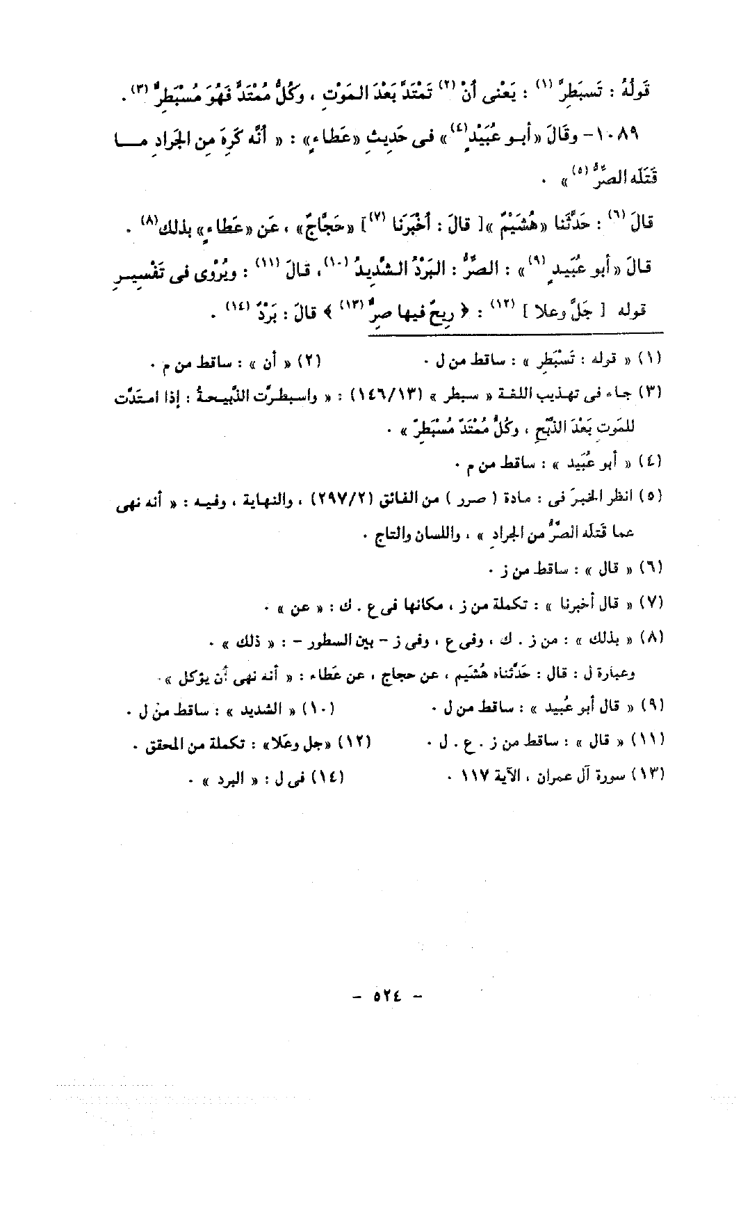 1089 - وقال «أبو عبيد» فى حديث «عطاء»: «أنه كره من الجراد ما قتله الصر».