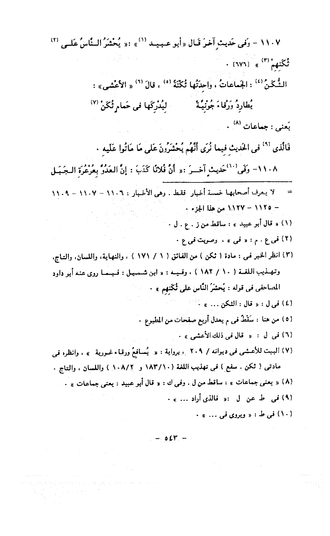 1107 - وفى حديث آخر قال «أبو عبيد»: «يحشر الناس على ثكنهم» [676].