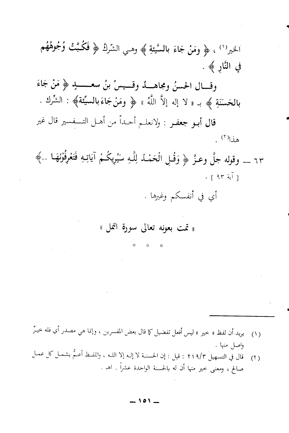 63 - وقوله جل وعز وقل الحمد لله سيريكم آياته فتعرفونها آية 93 أي في أنفسكم وغيرها تمت بعونه تعالى سورة النمل