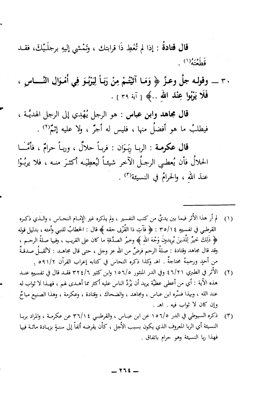 قال قتادة إذا لم تعط ذا قرابتك وتمشي إليه برجليك فقد قطعته 30 - وقوله جل وعز وما آتيتم من ربا ليربو في أموال الناس فلا يربوا عند الله قال مجاهد وابن عباس هو الرجل يهدي إلى الرجل الهدية فيطلب ما هو أفضل منها فليس له أجر ولا عليه إثم قال عكرمة الربا ربوان فربا حلال وربا حرام فأما الحلال فأن يعطي الرجل الآخر شيئا ليعطيه أكثر منه فلا يربوا عند الله والحرام في النسيئة