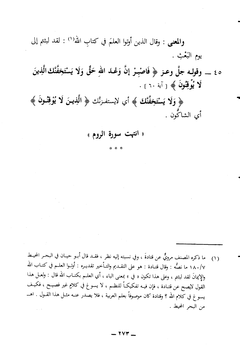 لا يوقنون آية 60 ولا يستخفنك أي لا يستفزنك الذين لا يوقنون أي الشاكون انتهت سورة الروم