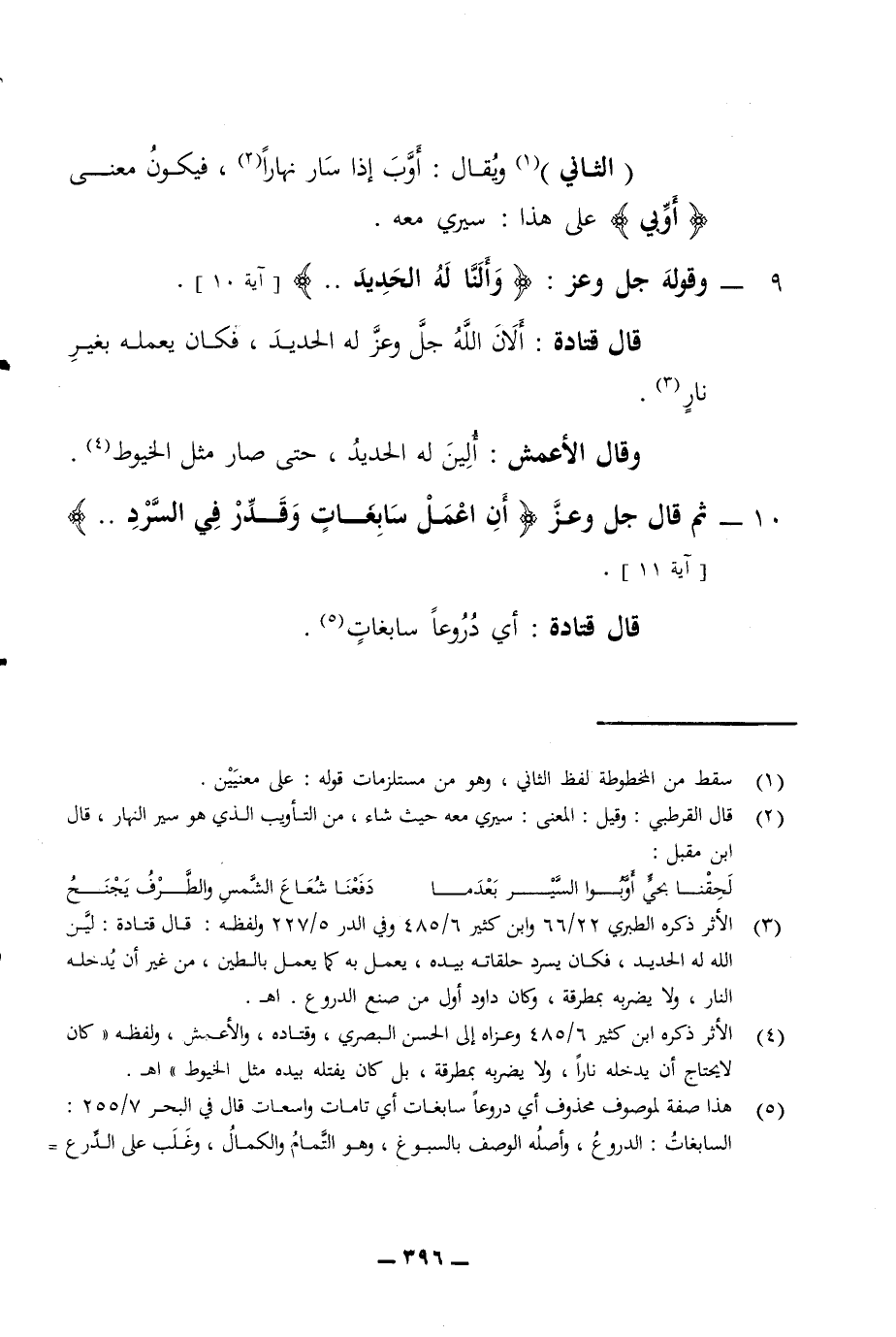 الثاني ويقال أوب إذا سار نهارا فيكون معنى أوبي على هذا سيري معه 9 - وقوله جل وعز وألنا له الحديد آية 10 قال قتادة ألان الله جل وعز له الحديد فكان يعمله بغير نار