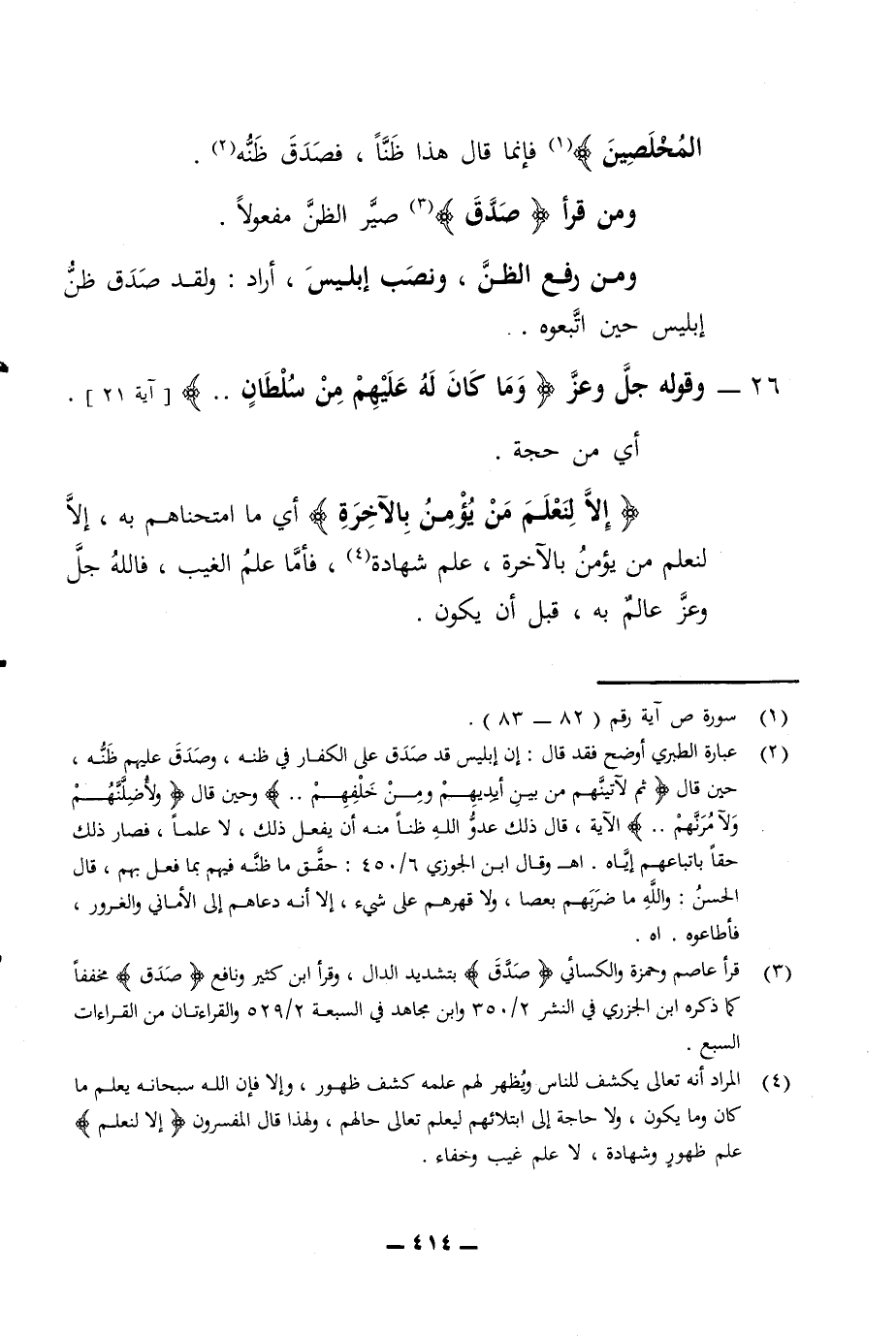 المخلصين فإنما قال هذا ظنا فصدق ظنه ومن قرأ صدق صير الظن مفعولا ومن رفع الظن ونصب إبليس أراد ولقد صدق ظن