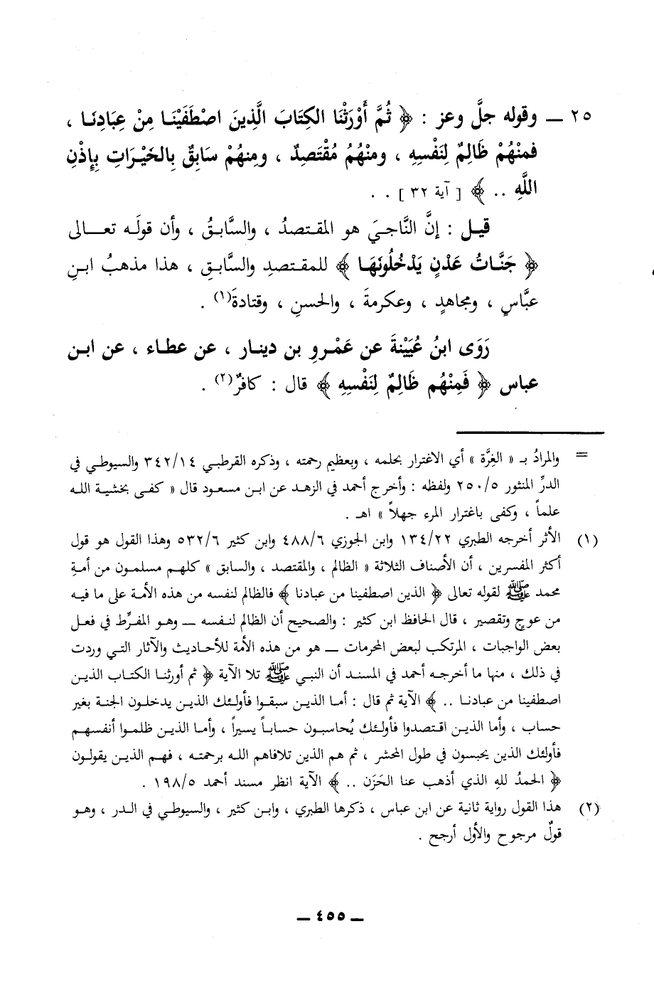 25 - وقوله جل وعز ثم أورثنا الكتاب الذين اصطفينا من عبادنا فمنهم ظالم لنفسه ومنهم مقتصد ومنهم سابق بالخيرات بإذن