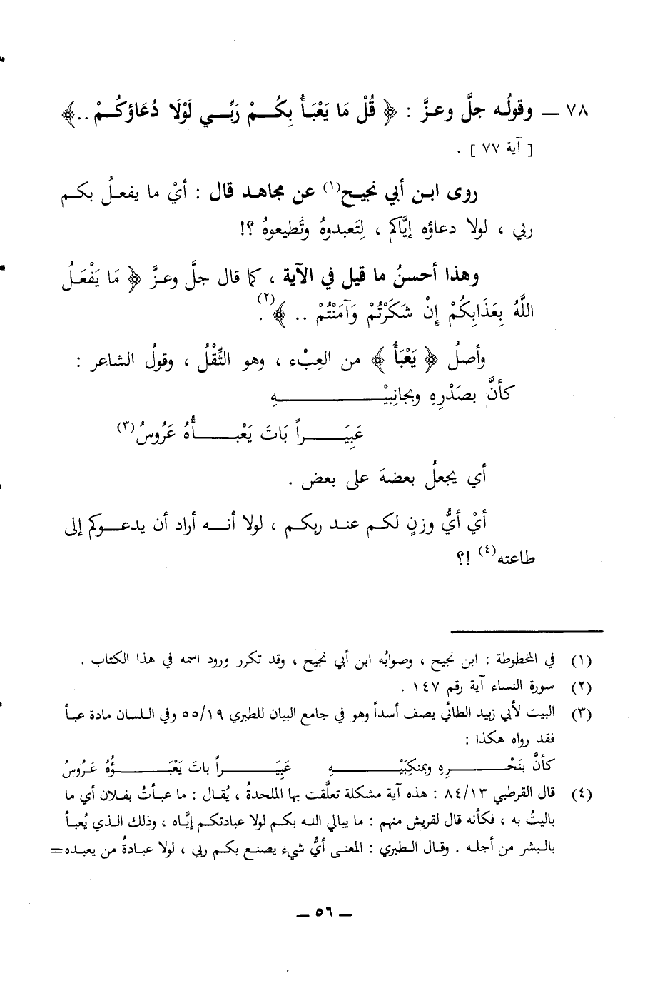78 - وقوله جل وعز قل ما يعبأ بكم ربي لولا دعاؤكم آية 77
