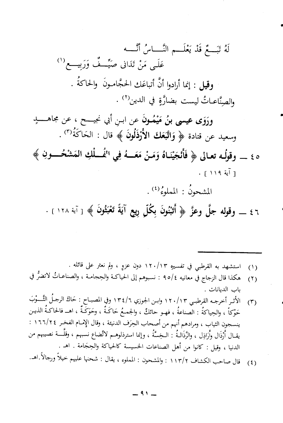له تبع قد يعلم الناس أنه على من تدانى صيف وربيع وقيل إنما أرادوا أن أتباعك الحجامون والحاكة والصناعات ليست بضارة في الدين وروى عيسى بن ميمون عن ابن أبي نجيح عن مجاهد وسعيد عن قتادة واتبعك الأرذلون قال الحاكة 45 - وقوله تعالى فأنجيناه ومن معه في الفلك المشحون آية 119 المشحون المملوء 46 - وقوله جل وعز أتبنون بكل ريع آية تعبثون آية 128