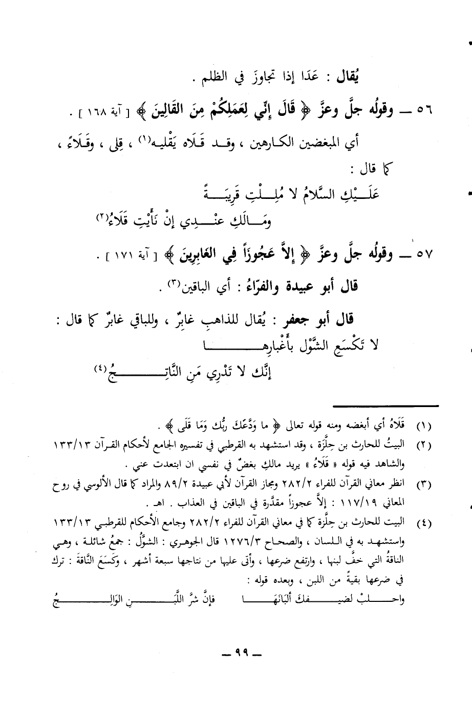 يقال عدا إذا تجاوز في الظلم 56 - وقوله جل وعز قال إني لعملكم من القالين آية 168 أي المبغضين الكارهين وقد قلاه يقليه قلى وقلاء
