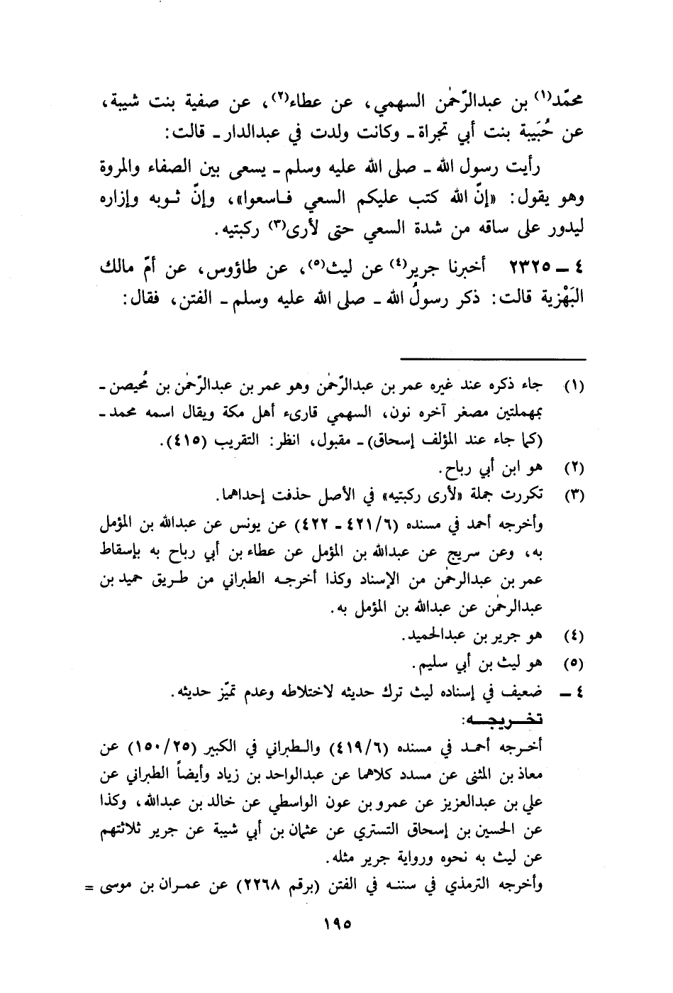 2325 - أَخْبَرَنَا جَرِيرٌ، عَنْ لَيْثٍ، عَنْ طاوسٍ، عَنْ أُمِّ مَالِكٍ الْبَهْزِيَّةِ قَالَتْ: ذَكَرَ رَسُولُ اللَّهِ صَلَّى اللهُ عَلَيْهِ وَسَلَّمَ الْفِتَنَ فَقَالَ: «§خَيْرُكُمْ فِيهَا أَوْ خَيْرُ النَّاسِ رَجُلٌ يَعْزِلُ فِي مَالِهِ يَعْبُدُ رَبَّهُ وَيُعْطِي حَقَّهُ، وَرَجُلٌ يُخِيفَهُ الْعَدُوُّ وَيُخِيفَهُمْ»
