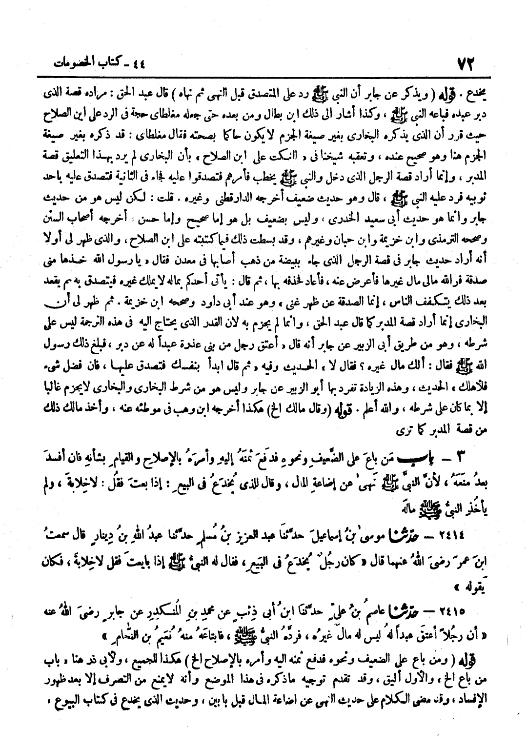 يُخْدَعُ قَوْلُهُ وَيُذْكَرُ عَنْ جَابِرٍ أَنَّ النَّبِيَّ صَلَّى اللَّهُ عَلَيْهِ وَسَلَّمَ رَدَّ عَلَى الْمُتَصَدِّقِ قَبْلَ النَّهْيِ ثُمَّ نَهَاهُ قَالَ عَبْدُ الْحَقِّ مُرَادُهُ قِصَّةُ الَّذِي دَبَّرَ عَبْدَهُ فَبَاعَهُ النَّبِيُّ صَلَّى اللَّهُ عَلَيْهِ وَسَلَّمَ وَكَذَا أَشَارَ إِلَى ذَلِك بن بَطَّالٍ وَمَنْ بَعْدَهُ حَتَّى جَعَلَهُ مُغَلْطَايْ حُجَّةً فِي الرَّد على بن الصَّلَاحِ حَيْثُ قَرَّرَ أَنَّ الَّذِي يَذْكُرُهُ الْبُخَارِيُّ بِغَيْرِ صِيغَةِ الْجَزْمِ لَا يَكُونُ حَاكِمًا بِصِحَّتِهِ فَقَالَ مُغَلْطَايْ قَدْ ذَكَرَهُ بِغَيْرِ صِيغَةِ الْجَزْمِ هُنَا وَهُوَ صَحِيحٌ عِنْدَهُ وَتَعَقَّبَهُ شَيْخُنَا فِي النكت على بن الصَّلَاحِ بِأَنَّ الْبُخَارِيَّ لَمْ يُرِدْ بِهَذَا التَّعْلِيقِ قِصَّةَ الْمُدَبَّرِ وَإِنَّمَا أَرَادَ قِصَّةَ الرَّجُلِ الَّذِي دَخَلَ وَالنَّبِيُّ صَلَّى اللَّهُ عَلَيْهِ وَسَلَّمَ يَخْطُبُ فَأَمَرَهُمْ فَتَصَدَّقُوا عَلَيْهِ فَجَاءَ فِي الثَّانِيَةِ فَتَصَدَّقَ عَلَيْهِ بِأَحَدِ ثَوْبَيْهِ فَرَدَّ عَلَيْهِ النَّبِيُّ صَلَّى اللَّهُ عَلَيْهِ وَسَلَّمَ قَالَ وَهُوَ حَدِيثٌ ضَعِيفٌ أَخْرَجَهُ الدَّارَقُطْنِيُّ وَغَيْرُهُ قُلْتُ لَكِنْ لَيْسَ هُوَ مِنْ حَدِيثِ جَابِرٍ وَإِنَّمَا هُوَ حَدِيثُ أَبِي سَعِيدٍ الْخُدْرِيِّ وَلَيْسَ بِضَعِيفٍ بَلْ هُوَ إِمَّا صَحِيحٌ وَإِمَّا حَسَنٌ أَخْرَجَهُ أَصْحَابُ السُّنَنِ وَصَحَّحَهُ التِّرْمِذِيّ وبن خُزَيْمَة وبن حِبَّانَ وَغَيْرُهُمْ وَقَدْ بَسَطْتُ ذَلِكَ فِيمَا كَتَبْتُهُ على بن الصَّلَاحِ وَالَّذِي ظَهَرَ لِي أَوَّلًا أَنَّهُ أَرَادَ حَدِيثَ جَابِرٍ فِي قِصَّةِ الرَّجُلِ الَّذِي جَاءَ بِبَيْضَةٍ مِنْ ذَهَبٍ أَصَابَهَا فِي مَعْدِنٍ فَقَالَ يَا رَسُولَ اللَّهِ خُذْهَا مِنِّي صَدَقَةً فَوَاللَّهِ مَالِي مَال غَيرهَا فَأَعْرض عَنهُ فَأَعَادَ فخذفه بِهَا ثُمَّ قَالَ يَأْتِي أَحَدُكُمْ بِمَالِهِ لَا يَمْلِكُ غَيْرَهُ فَيَتَصَدَّقُ بِهِ ثُمَّ يَقْعُدُ بَعْدَ ذَلِكَ يَتَكَفَّفُ النَّاسَ إِنَّمَا الصَّدَقَةُ عَنْ ظَهْرِ غنى وَهُوَ عِنْد أبي دَاوُد وَصَححهُ بن خُزَيْمَةَ ثُمَّ ظَهَرَ لِي أَنَّ الْبُخَارِيَّ إِنَّمَا أَرَادَ قِصَّةَ الْمُدَبَّرِ كَمَا قَالَ عَبْدُ الْحَقِّ وَإِنَّمَا لَمْ يَجْزِمْ بِهِ لِأَنَّ الْقَدْرَ الَّذِي يَحْتَاجُ إِلَيْهِ فِي هَذِهِ التَّرْجَمَةِ لَيْسَ عَلَى شَرْطِهِ وَهُوَ مِنْ طَرِيقِ أَبِي الزُّبَيْرِ عَنْ جَابِرٍ أَنَّهُ قَالَ أَعْتَقَ رَجُلٌ مِنْ بَنِي عُذْرَةَ عَبْدًا لَهُ عَنْ دُبُرٍ فَبَلَغَ ذَلِكَ رَسُولِ اللَّهِ صَلَّى اللَّهُ عَلَيْهِ وَسَلَّمَ فَقَالَ أَلَكَ مَالٌ غَيْرُهُ فَقَالَ لَا الْحَدِيثَ وَفِيهِ ثُمَّ قَالَ ابْدَأْ بِنَفْسِكَ فَتَصَدَّقْ عَلَيْهَا فَإِنْ فَضَلَ شَيْءٌ فَلِأَهْلِكَ الْحَدِيثَ وَهَذِهِ الزِّيَادَةُ تَفَرَّدَ بِهَا أَبُو الزُّبَيْرِ عَنْ جَابِرٍ وَلَيْسَ هُوَ مِنْ شَرْطِ الْبُخَارِيِّ وَالْبُخَارِيُّ لَا يَجْزِمُ غَالِبًا إِلَّا بِمَا كَانَ عَلَى شَرْطِهِ وَاللَّهُ أَعْلَمُ قَوْله وَقَالَ مَالك الخ هَكَذَا أخرجه بن وَهْبٍ فِي مُوَطَّئِهِ عَنْهُ وَأَخَذَ مَالِكٌ ذَلِكَ مِنْ قِصَّةِ الْمُدَبَّرِ كَمَا تَرَى