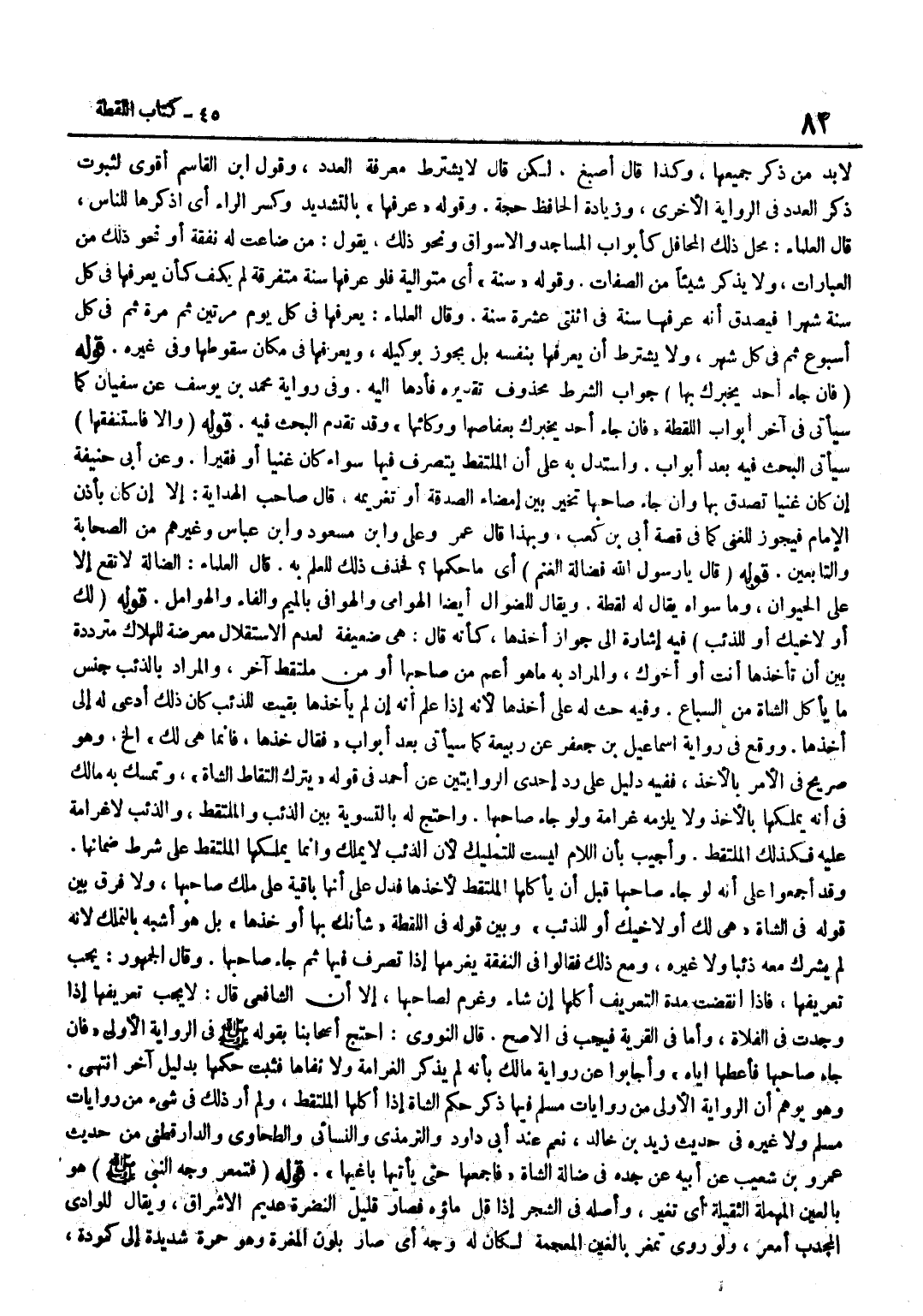 لَا بُدَّ مِنْ ذِكْرِ جَمِيعِهَا وَكَذَا قَالَ أَصْبَغُ لَكِنْ قَالَ لَا يُشْتَرَطُ مَعْرِفَةُ الْعَدَدِ وَقَول بن الْقَاسِمِ أَقْوَى لِثُبُوتِ ذِكْرِ الْعَدَدِ فِي الرِّوَايَةِ الْأُخْرَى وَزِيَادَةُ الْحَافِظِ حُجَّةٌ وَقَوْلُهُ عَرِّفْهَا بِالتَّشْدِيدِ وَكَسْرِ الرَّاءِ أَيِ اذْكُرْهَا لِلنَّاسِ قَالَ الْعُلَمَاءُ مَحَلُّ ذَلِكَ الْمَحَافِلُ كَأَبْوَابِ الْمَسَاجِدِ وَالْأَسْوَاقِ وَنَحْوِ ذَلِكَ يَقُولُ مَنْ ضَاعَتْ لَهُ نَفَقَةٌ أَوْ نَحْوَ ذَلِكَ مِنَ الْعِبَارَاتِ وَلَا يَذْكُرُ شَيْئًا مِنَ الصِّفَاتِ وَقَوْلُهُ سَنَةً أَيْ مُتَوَالِيَةً فَلَوْ عَرَّفَهَا سَنَةً مُتَفَرِّقَةً لَمْ يَكْفِ كَأَنْ يُعَرِّفَهَا فِي كُلِّ سَنَةٍ شَهْرًا فَيَصْدُقُ أَنَّهُ عَرَّفَهَا سَنَةً فِي اثْنَتَيْ عَشْرَةَ سَنَةً وَقَالَ الْعُلَمَاءُ يُعَرِّفُهَا فِي كُلِّ يَوْمٍ مَرَّتَيْنِ ثُمَّ مَرَّةً ثُمَّ فِي كُلِّ أُسْبُوعٍ ثُمَّ فِي كُلِّ شَهْرٍ وَلَا يُشْتَرَطُ أَنْ يُعَرِّفَهَا بِنَفْسِهِ بَلْ يَجُوزُ بِوَكِيلِهِ وَيُعَرِّفُهَا فِي مَكَانِ سُقُوطِهَا وَفِي غَيْرِهِ قَوْلُهُ فَإِنْ جَاءَ أَحَدٌ يُخْبِرُكَ بِهَا جَوَابُ الشَّرْطِ مَحْذُوفٌ تَقْدِيرُهُ فَأَدِّهَا إِلَيْهِ وَفِي رِوَايَةِ مُحَمَّدِ بْنِ يُوسُفَ عَنْ سُفْيَانَ كَمَا سَيَأْتِي فِي آخِرِ أَبْوَابِ اللُّقَطَةِ فَإِنْ جَاءَ أَحَدٌ يُخْبِرُكَ بِعِفَاصِهَا وَوِكَائِهَا وَقَدْ تَقَدَّمَ الْبَحْثُ فِيهِ قَوْلُهُ وَإِلَّا فَاسْتَنْفِقْهَا سَيَأْتِي الْبَحْثُ فِيهِ بَعْدَ أَبْوَابٍ وَاسْتُدِلَّ بِهِ عَلَى أَنَّ الْمُلْتَقِطَ يَتَصَرَّفُ فِيهَا سَوَاءٌ كَانَ غَنِيًّا أَوْ فَقِيرًا وَعَنْ أَبِي حَنِيفَةَ إِنْ كَانَ غَنِيًّا تَصَدَّقَ بِهَا وَإِنْ جَاءَ صَاحِبُهَا تَخَيَّرَ بَيْنَ إِمْضَاءِ الصَّدَقَةِ أَوْ تَغْرِيمِهِ قَالَ صَاحِبُ الْهِدَايَةِ إِلَّا إِنْ كَانَ بِإِذْنِ الْإِمَامِ فَيَجُوزُ لِلْغَنِيِّ كَمَا فِي قِصَّةِ أُبَيِّ بْنِ كَعْبٍ وَبِهَذَا قَالَ عمر وَعلي وبن مَسْعُود وبن عَبَّاسٍ وَغَيْرُهُمْ مِنَ الصَّحَابَةِ وَالتَّابِعِينَ قَوْلُهُ قَالَ يَا رَسُولَ اللَّهِ فَضَالَّةُ الْغَنَمِ أَيْ مَا حُكْمُهَا فَحَذَفَ ذَلِكَ لِلْعِلْمِ بِهِ قَالَ الْعُلَمَاءُ الضَّالَّةُ لَا تَقَعُ إِلَّا عَلَى الْحَيَوَانِ وَمَا سِوَاهُ يُقَالُ لَهُ لُقَطَةٌ وَيُقَالُ لِلضَّوَالِّ أَيْضًا الْهَوَامِي وَالْهَوَافِي بِالْمِيمِ وَالْفَاءِ وَالْهَوَامِلُ قَوْلُهُ لَكَ أَوْ لِأَخِيكَ أَوْ لِلذِّئْبِ فِيهِ إِشَارَةٌ إِلَى جَوَازِ أَخْذِهَا كَأَنَّهُ قَالَ هِيَ ضَعِيفَةٌ لِعَدَمِ الِاسْتِقْلَالِ مُعَرَّضَةٌ لِلْهَلَاكِ مُتَرَدِّدَةٌ بَيْنَ أَنْ تَأْخُذَهَا أَنْتَ أَوْ أَخُوكَ وَالْمُرَادُ بِهِ مَا هُوَ أَعَمُّ مِنْ صَاحِبِهَا أَوْ مِنْ مُلْتَقِطٍ آخَرَ وَالْمُرَادُ بِالذِّئْبِ جِنْسُ مَا يَأْكُلُ الشَّاةَ مِنَ السِّبَاعِ وَفِيهِ حَثٌّ لَهُ عَلَى أَخْذِهَا لِأَنَّهُ إِذَا عَلِمَ أَنَّهُ إِنْ لَمْ يَأْخُذْهَا بَقِيَتْ لِلذِّئْبِ كَانَ ذَلِكَ أَدْعَى لَهُ إِلَى أَخْذِهَا وَوَقَعَ فِي رِوَايَةِ إِسْمَاعِيلِ بْنِ جَعْفَرٍ عَنْ رَبِيعَةَ كَمَا سَيَأْتِي بَعْدَ أَبْوَابٍ فَقَالَ خُذْهَا فَإِنَّمَا هِيَ لَكَ إِلَخْ وَهُوَ صَرِيحٌ فِي الْأَمْرِ بِالْأَخْذِ فَفِيهِ دَلِيلٌ عَلَى رَدِّ إِحْدَى الرِّوَايَتَيْنِ عَنْ أَحْمَدَ فِي قَوْلِهِ يَتْرُكُ الْتِقَاطَ الشَّاةِ وَتَمَسَّكَ بِهِ مَالِكٌ فِي أَنَّهُ يَمْلِكُهَا بِالْأَخْذِ وَلَا يَلْزَمُهُ غَرَامَةٌ وَلَوْ جَاءَ صَاحِبُهَا وَاحْتَجَّ لَهُ بِالتَّسْوِيَةِ بَيْنَ الذِّئْبِ وَالْمُلْتَقِطِ وَالذِّئْبُ لَا غَرَامَةَ عَلَيْهِ فَكَذَلِكَ الْمُلْتَقِطُ وَأُجِيبَ بِأَنَّ اللَّامَ لَ