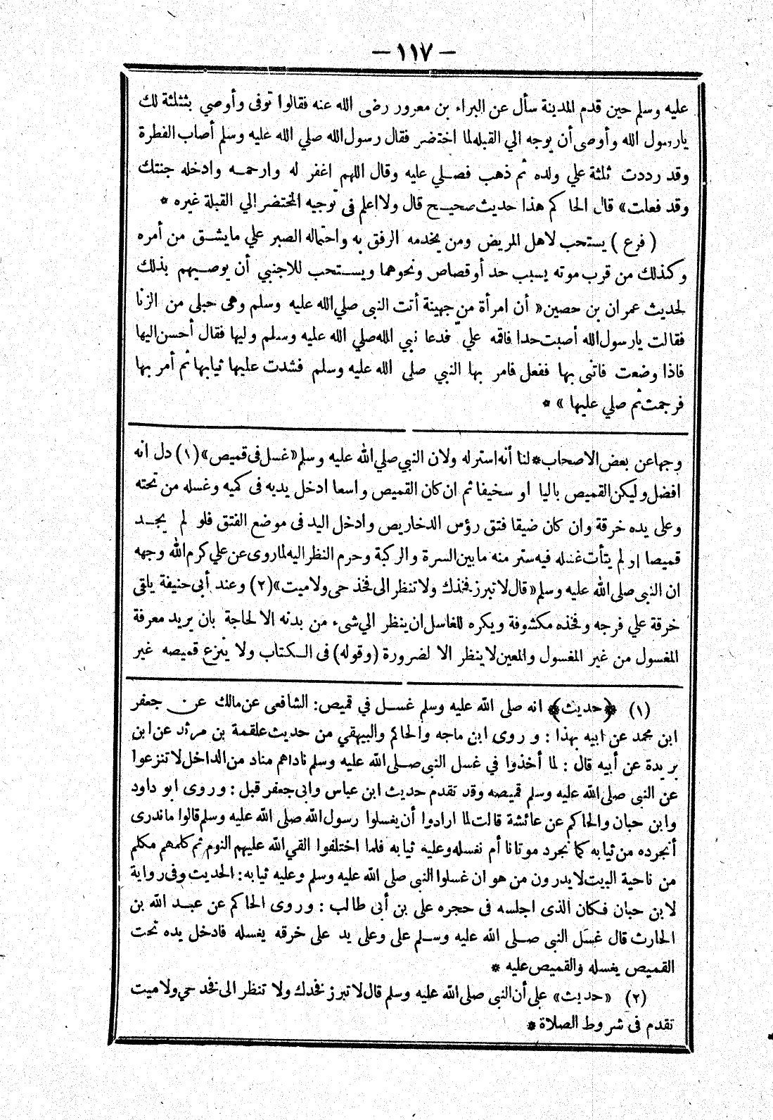 وجها عن بعض الاصحاب لنا أنه استر له ولان النبي صلي الله عليه وسلم (غسل قميص) دل انه افضل وليكن القميص باليا أو سخيفا ثم ان كان القميص واسعا ادخل يديه في كميه وغسله من تحته وعلى يده خرقة وان كان ضيقا فتق رؤس الدخاريص وادخل اليد في موضع الفتق فلو لم يحسد قميصا أو لم يتأت غسله فيه ستر منه ما بين السره والركبة وحرم النظر إليه لما روى عن على كرم الله وجهه ان النبي صلى الله عليه وسلم (قال لا تبرز فخندك ولا تنظر إلى فخذ حى ولا ميت) وعند أبى حنيفه يلقى خرقة علي فرجه وفخذه مكشوفة ويكره للغاسل ان ينظر الي شئ من بدنه الا لحاجة بان يريد معرفة المغسول من غيرر المغسول والمعين لا ينظر الا لضرورة (وقوله له) في الكتاب ولا ينزع قميصه غير
