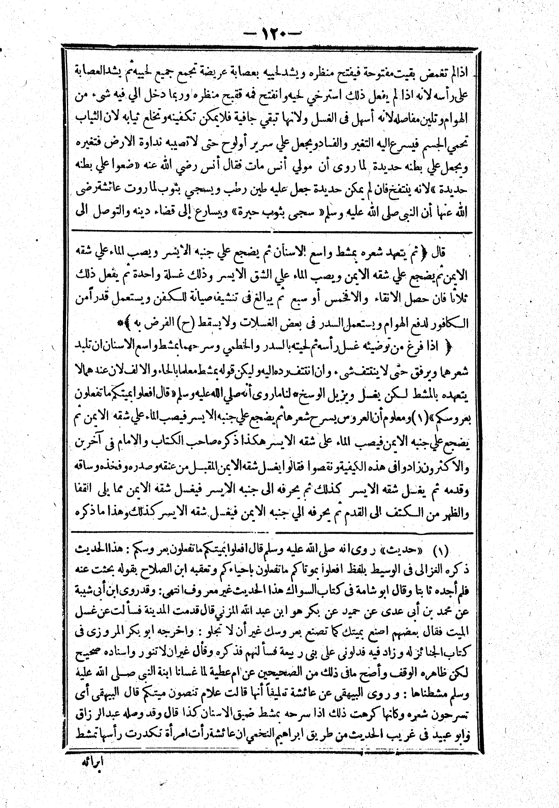 قال (ثم يتعهد شعره بمشط واسع الاسنان ثم يضجع علي جنبه الايسر ويصب الماء علي شقه الايمن ثم يضجع علي شقه الايمن ويصب الماء علي الشق الايسر وذلك غسله واحده ثم يفعل ذلك ثلاثا فان حصل الانقاء والا فخمس أو سبع ثم يبالغ في تنشيفه صيانة للكفن ويستعمل قدرا من الكافور لدفع الهوام ويستعمل السدر في بعض الغسلات ولا يسقط (ح) الفرض به) * (إذا فرغ من توضيئه غسل رأسه ثم لحيته بالسدر والخطمي وسرحهما بمشط واسع الاسنان ان تلبد شعرهما ويرفق حتى لا ينتف شئ وان انتف رده إليه وليكن قوله بمشط معلما بالحاء والالف لان عندهما لا يتعهده بالمشط لكن يغسل ويزيل الوسخ * لنا ما روى أنه صلي الله عليه وسلم (قال افعلوا بميتكم ما تفعلون بعروسكم) ومعلوم أن العروس يسرح شعرها ثم يضجع علي جنبه الايسر فيصب الماء علي شقه الايمن ثم يضجع على جنبه الايمن فيصب الماء على شقه الايسر هكذا ذكره صاحب الكتاب والامام في آخرين والاكثرون زادوا في هذه الكيفية ونقصوا فقالوا يغسل شقه الايمن المقبل من عنقه وصدره وفخذه وساقه وقدمه ثم يغسل شقه الايسر كذلك ثم يحرفه إلى حنبه الايسر فيغسل شقه الايمن مما بلى القضا والظهر من الكتف إلى القدم ثم يحرفه الي جنبه الايمن فيغسل شقه الايسر كذلك وهذا ما ذكره