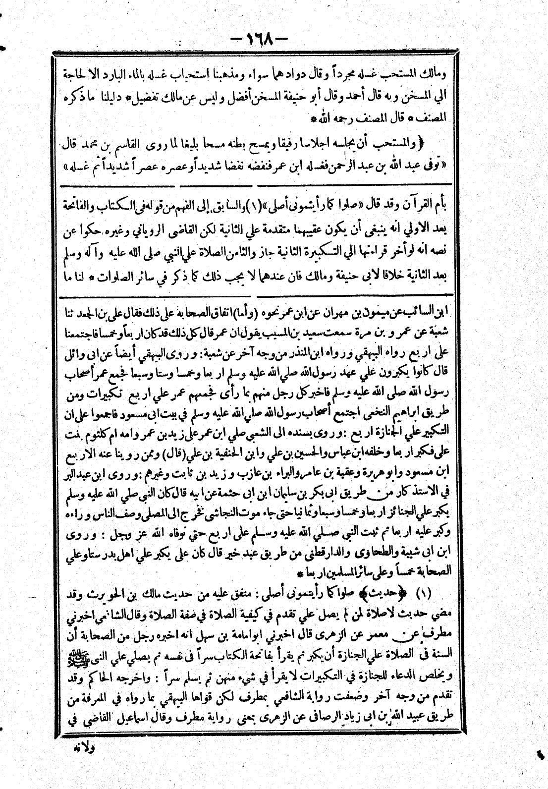 بأم القرآن وقد قال (صلوا كما رأيتموني أصلى) والسابق إلى الفهم من قوله في الكتاب والفاتحة يعد الاولي انه ينبغى أن يكون عقيبهما متقدمة علي الثانية لكن القاضى الرواياتي وغيره حكوا عن نصه انه لو أخر قراءتها الي التكبيرة الثانية جاز والثامن الصلاة علي النبي صلى الله عليه وسلم بعد الثانية خلافا لابي حنفة ومالك فان عندهما لا يجب ذلك كما ذكر في سائر الصلوات * لنا ما