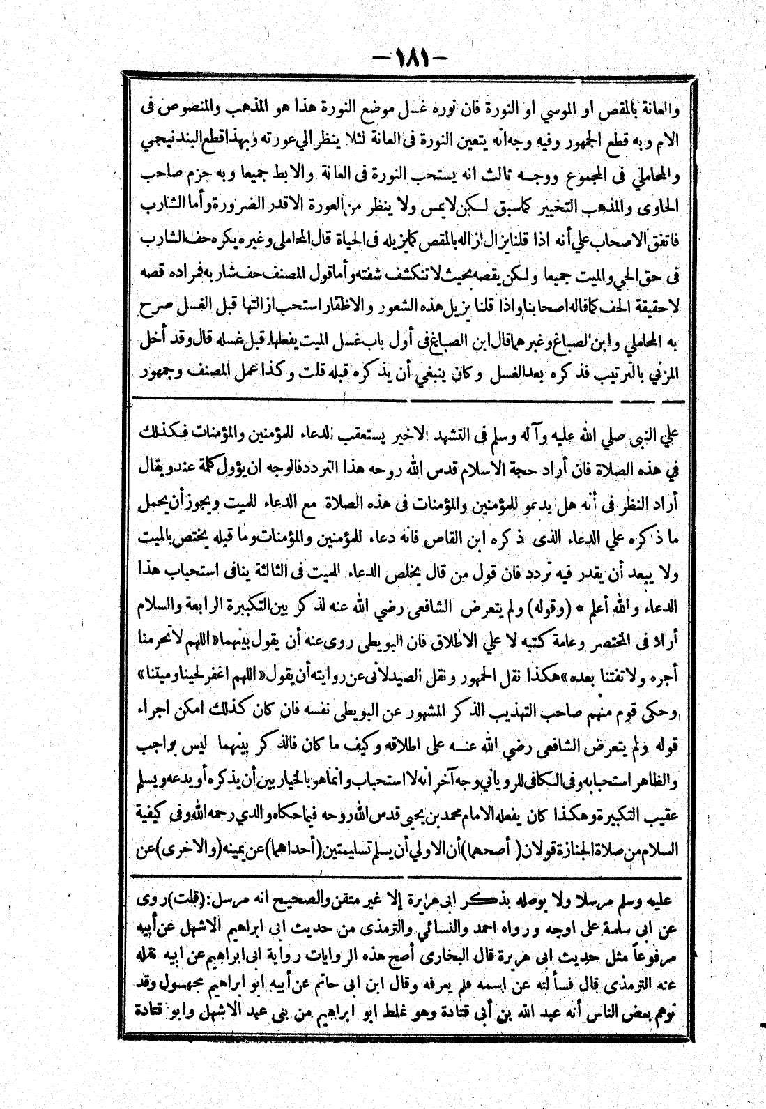 علي النبي صلي الله عليه وسلم في التشهد الا خير يستعقب الدعاء للمؤمنين والمؤمنات فكذلك في هذه الصلاة فان أراد حجة الاسلام قدس الله روحه هذا التردد فالوجه ان يؤول كلمة عند ويقال أراد النظر في أنه هل يدعو للمؤمنين والمؤمنات في هذه الصلاة مع الدعاء للميت ويجوز أن يحمل ما ذكره علي الدعاء الذى ذكره ابن القاص فانه دعاء للمؤمنين والمؤمنات وما قبله يختص بالميت ولا يبعد أن يقدر فيه تردد فان قول من قال يخلص الدعاء للميت في الثالثة ينافى استحباب هذا الدعاء والله أعلم * (وقوله) ولم يتعرض الشافعي رضي الله عنه لذكر بين التكبيرة الرابعة والسلام أراد في المختصر وعامة كتبه لا علي الاطلاق فان البويطى روى عنه أن يقول بينهما (اللهم لا تحرمنا أجره ولا تفتنا بعده) هكذا نقل الجمهور ونقل الصيدلانى عن روايته أن يقول (اللهم اغفر لحينا وميتنا) وحكى قوم منهم صاحب التهذيب الذكر المشهور عن البويطى نفسه فان كان كذلك امكن اجراء قوله ولم يتعرض الشافعي رضي اله عنه على اطلاقه وكيف ما كان فالذكر بينهما لى بواجب والظاهر استحبابه وفي الكافي للرواياني وجه آخرانه لا استحباب وانما هو بالخيار بين أن يذكره أو يدعه ويسلم عقيب التكبيرة وهكذا كان يفعله الامام محمد بن يحيى قدس الله روحه فيما حكاه والدي رحمه الله وفي كيفية السلام من صلاة الجنازة قولان (أصحهما) أن الاولي أن يسلم تسليمتين (أحداهما) عن يمينه (والاخرى) عن