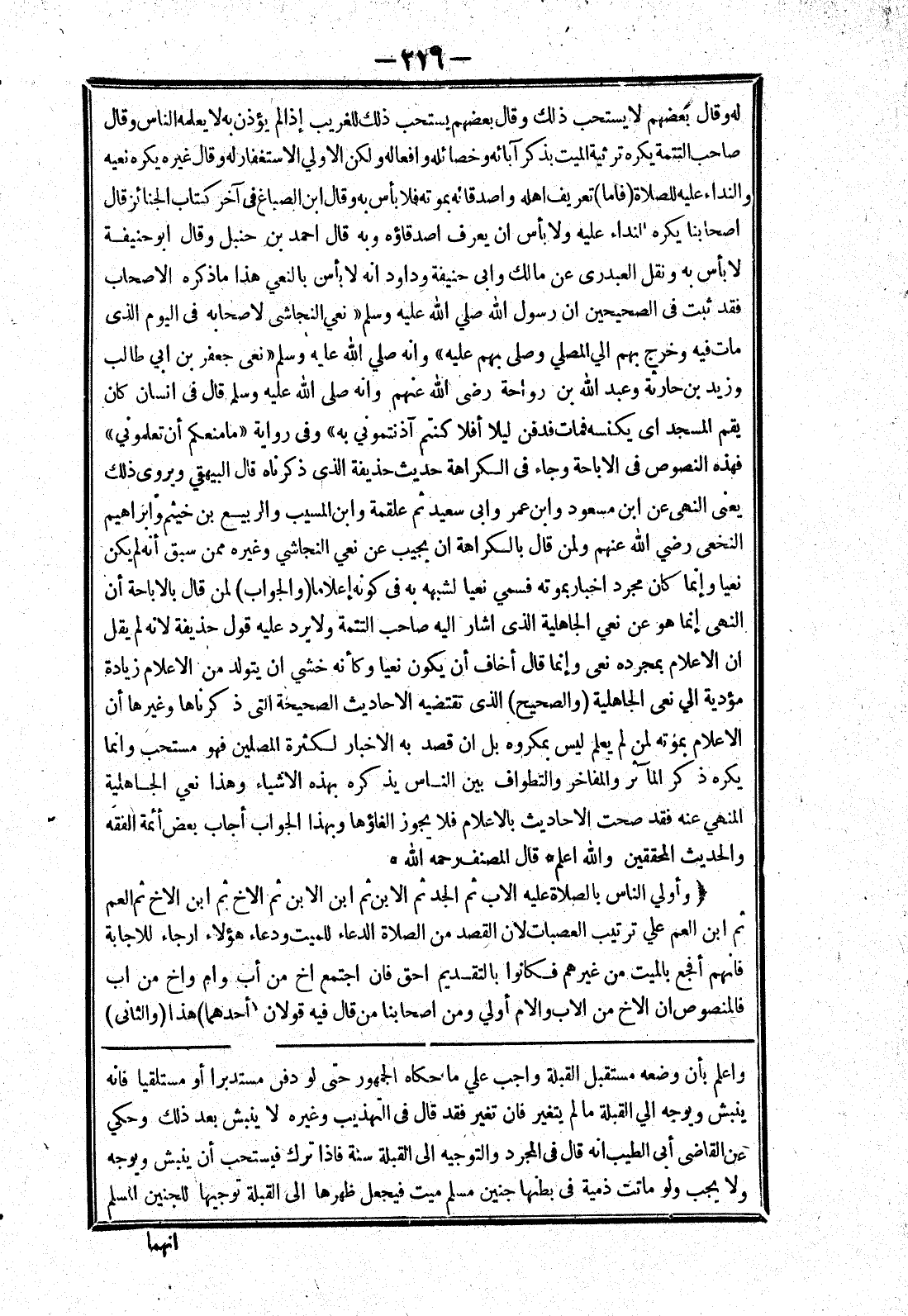 واعلم بأن وضعه مستقبل القبلة واجب علي ما حكاه الجمهور حتى لو دفن مستدبرا أو مستلقيا فانه ينبش ويوجه الي القبلة ما لم يتغير فان تغير فقد قال في التهذيب وغيره لا ينبش بعد ذلك وحكي عن القاضى أبى الطيب انه قال في المجرد والتوجيه إلى القبلة سنة فإذا ترك فيستحب أن ينبش ويوجه ولا يجب ولو ماتت ذمية في بطنها جنين مسلم ميت فيجعل ظهرها إلى القبلة توجيها للجنين المسلم