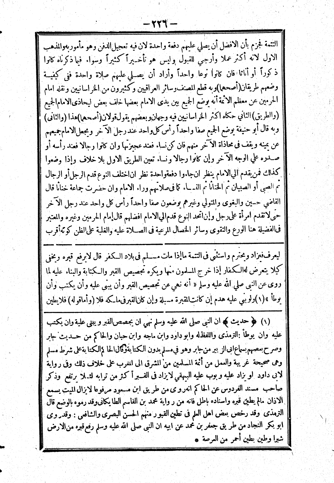 ليعرف فيزاد ويحترم واستثنى في التتمة ما إذا مات مسلم في بلاد الكفر قال لا يرفع قبره ويخفى كيلا يتعرض له الكفار إذا خرج المسلمون منها ويكره تجصيص القبر والكتابة والبناء عليه لما روى عن النبي صلي الله عليه وسلم (أنه نهي عن تجصيص القبر وأن يبنى عليه وأن يكتب وأن يوطأ) ولو بني عليه هدم إن كانت المقبرة مسبلة وإن كان القبر في ملكه فلا (وأما قوله) فلا يطين