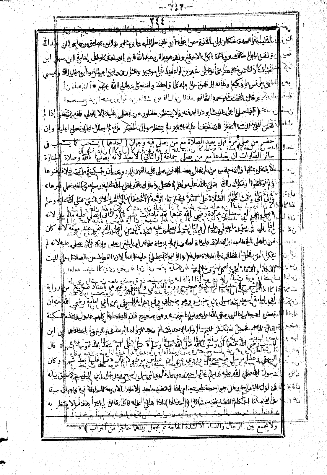 ولا يجمع بين الرجال والنساء الالشدة الحاجة ثم يجعل بينهما حاجز من التراب) *