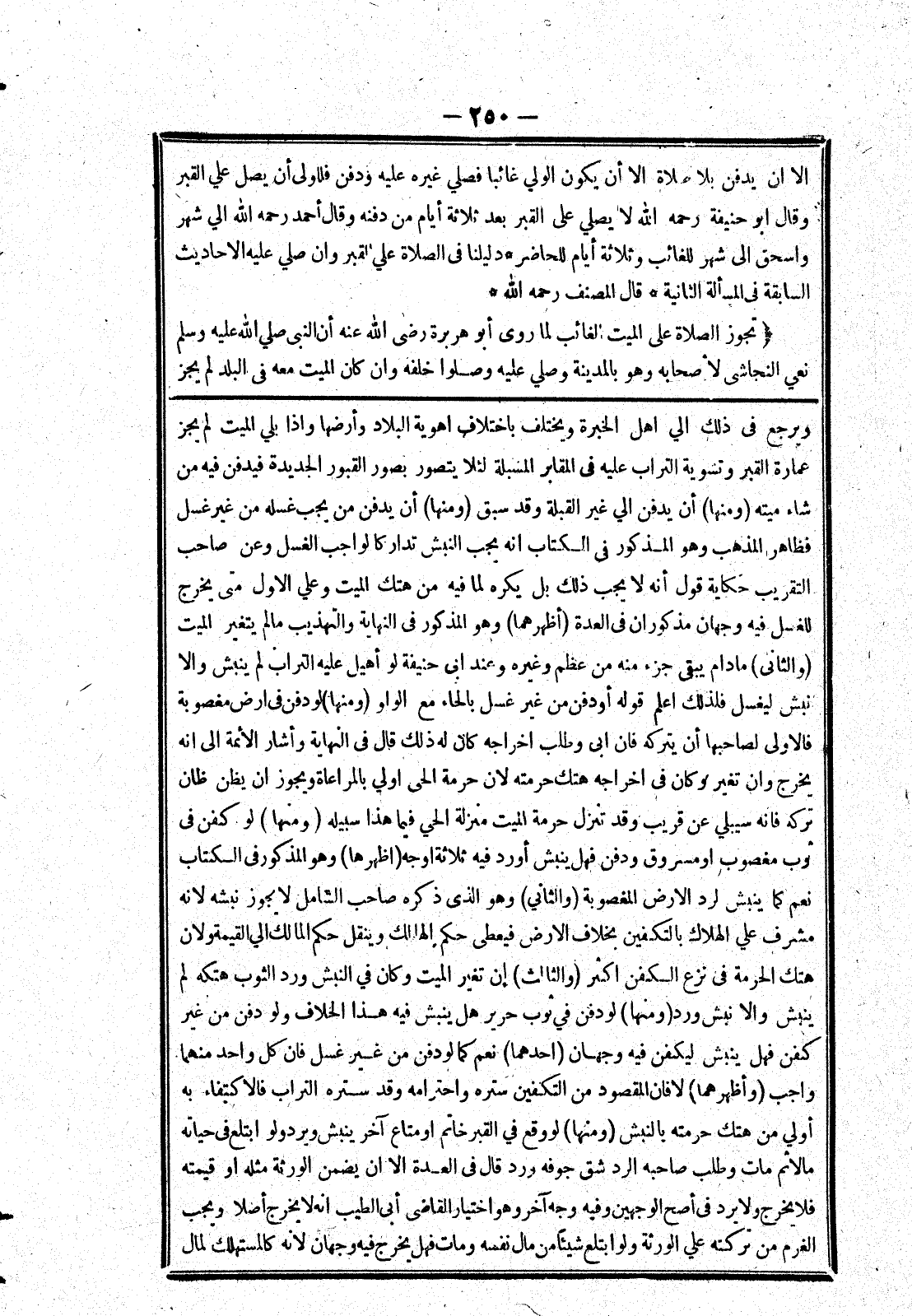 تركه فانه سيبلي عن قريب وقد تنزل حرمة الميت منزلة الحي فيما هذا سبيله (ومنها) لو كفن في ثوب مغصوب أو مسروق ودفن فهل ينبش أورد فيه ثلاثة اوجه (اظهرها) وهو المذكور في الكتاب نعم كما ينبش لرد الارض المغصوبة (والثاني) وهو الذى ذكره صاحب الشامل لا يجوز نبشه لانه مشرف علي الهلاك بالتكفين بخلاف الارض فيعطى حق إلها لك وينقل حكم المالك الي القيمة ولان هتك الحرمة في نزع الكفن اكثر (والثالث) إن تغير الميت وكان في النبش ورد الثوب هتكه لم ينبش والا نبش ورد (ومنها) لو دفن في ثوب حرير هل ينبش فيه هذا الحلاف ولو دفن من غير كفن فهل ينبش ليكفن فيه وجهان (احدهما) نعم كما لو دفن من غير غسل فان كل واحد منهما واجب (وأظهرهما) لا فان المقصود من التكفين ستره واحترامه وقد ستره التراب فالاكتفاء به أولي من هتك حرمته بالنبش (ومنها) لو وقع في القبر خاتم أو متاع آخر ينبش ويرد ولو ابتلع في حياته مالا ثم مات وطلب صاحبه الرد شق جوفه ورد قال في العدة الا ان يضمن الورثة مثل أو قيمته فلا يخرج ولا يرد في أصح الوجهين وفيه وجه آخرو هو اختيار القاضى أبى الطيب انه لا يخرج أصلا ويجب الغرم من تركته علي الورثة ولو ابتلع شيئا من مال نفسه ومات فهل يخرج فيه وجهان لانه كالمستهلك لمال