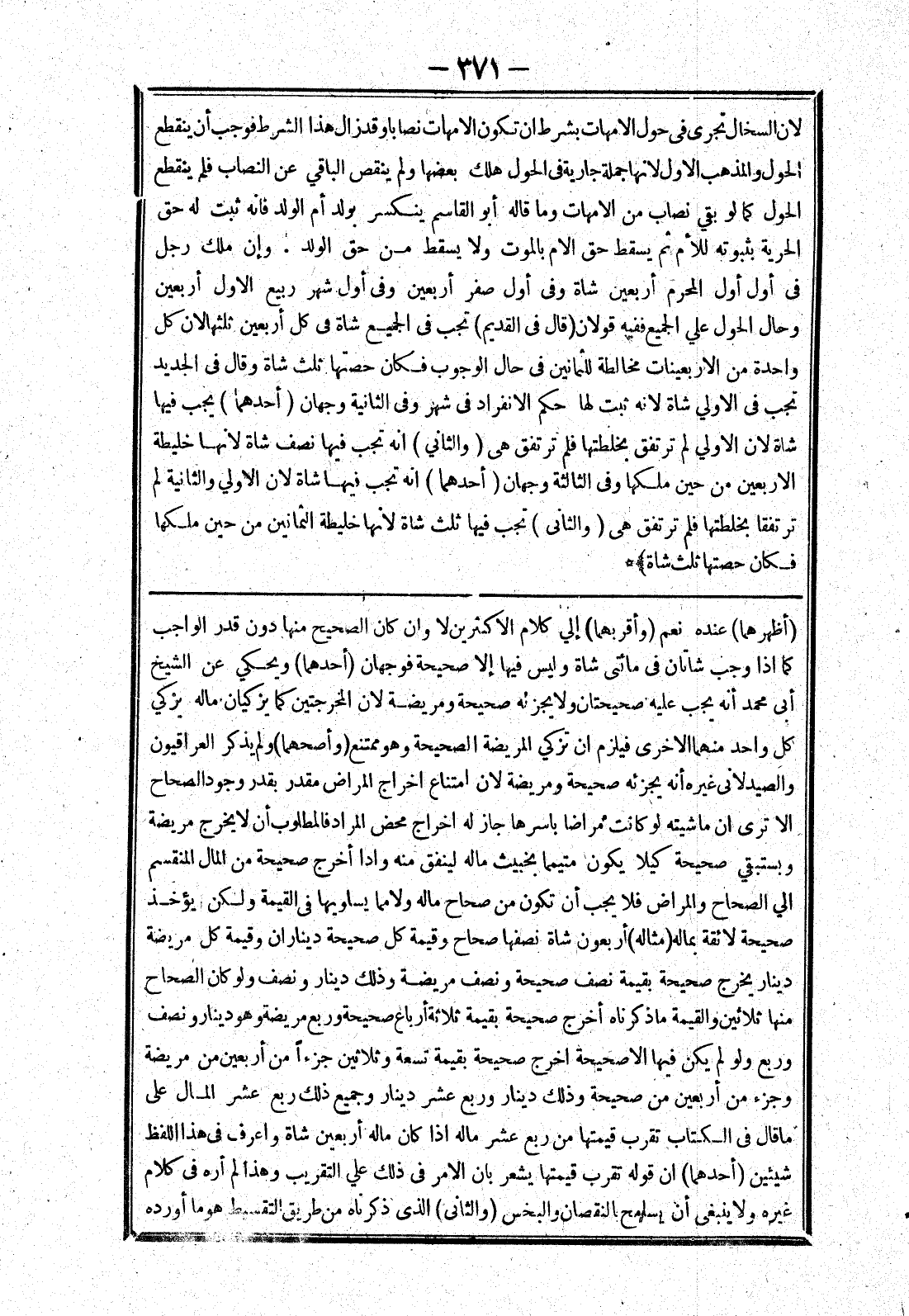 (أظهرهما) عنده نعم (وأقربهما) إلي كلام الاكثرين لا وان كان الصحيح منها دون قدر الواجب كما إذا وجب شاتان في مائتي شاة وليس فيها إلا صحيحة فوجهان (أحدهما) ويحكي عن الشيخ أبى محمد أنه يجب عليه صحيحتان ولا يجزئه صحيحة ومريضة لان المخرجتين كما يزكيان ماله يزكي كل واحد منهما الاخرى فيلزم ان تزكي المريضة الصحيحة وهو ممتنع (وأصحهما) ولم يذكر العراقيون والصيدلانى غيره أنه يجزئه صحيحة ومريضة لان امتناع اخراج المراض مقدر بقدر وجود الصحاح الا ترى ان ماشيته لو كانت مراضا باسرها جاز له اخراج محض المراد فالمطلوب أن لا يخرج مريضة ويستبقي صحيحة كيلا يكون متيمما بخبيث ماله لينفق منه وإذا أخرج صحيحة من المال المنقسم الي الصحاح والمراض فلا يجب أن تكون من صحاح ماله ولا مما يساويها في القيمة ولكن يؤخذ صحيحة لائقة بماله (مثاله) اربعون شاة نصفها صحاح وقيمة كل صحيحة ديناران وقيمة كل مريضة دينار يخرج صحيحة بقيمة نصف صحيحة ونصف مريضة وذلك دينار ونصف ولو كان الصحاح منها ثلاثين والقيمة ما ذكرناه أخرج صحيحة بقيمة ثلاثة أرباع صحيحة وربع مريضة وهو دينار ونصف وربع ولو لم يكن فهيا الاصحيحة اخرج صحيحة بقيمة تسعة وثلاثين جزءا من أربعين من مريضة وجزء من أربعين من صحيحة وذلك دينار وربع عشر دينار وجميع ذلك ربع عشر المال على ما قال في الكتاب تقرب قيمتها من ربع عشر مالله إذا كان ماله أربعين شاة واعرف في هذا اللفظ شيئين (أحدهما) ان قوله تقرب قيمتها يشعر بان الامر في ذلك علي التقريب وهذا لم أره في كلام غيره ولا ينبغى أن يسامح بالنقصان والبخس (والثانى) الذى ذكرناه من طريق التقسيط هوما أورده
