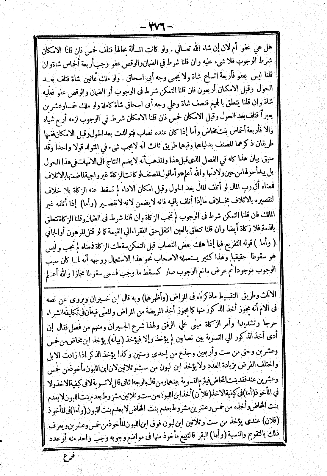 بنت المخاض وأخذه من خمس وعشرين مشروط بعدم بنت المخاض لا بعدم بنت اللبون (وأما) في المأخوذ (فلان) عندي يؤخذ من ست وثلاثين ابن لبون فوق ابن اللبون المأخوذ من خمس وعشرين ويعرف ذلك بالتقويم والنسبة (وأما) البقر فالتبيع مأخوذ منها في مواضع وجوبه وجب واحد منه أو عدد