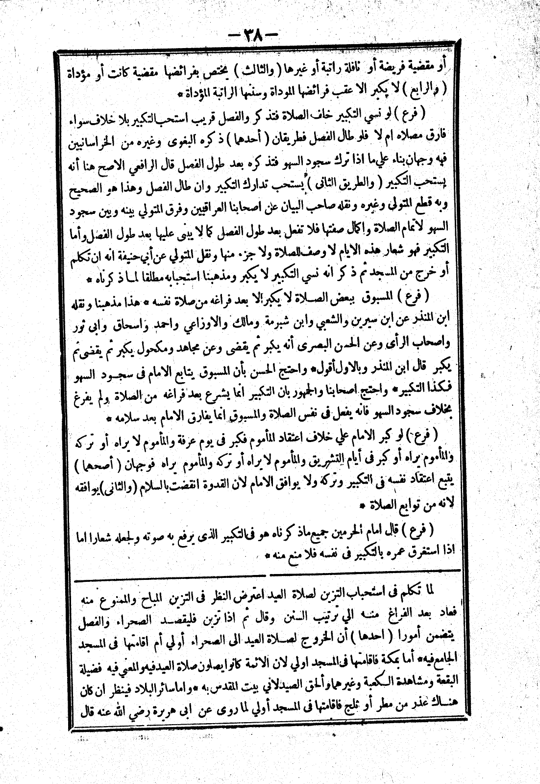 لما تكلم في استحباب التزين لصلاة العيد اعترض النظر في التزين المباح والممنوع منه فعاد بعد الفراغ منه الي ترتيب السنن وقال ثم إذا تزين فليقصد الصحراء والفصل يتضمن أمورا (احدها) أن الخروج لصلاة العيد إلى الصحراء أولي أم اقامتها في المسجد الجامع فيه * أما بمكة فاقامتها في المسجد اولي لان الائمة كانوا يصلون صلاة العيد فيه والمعني فيه فضيلة البقعة ومشاهدة الكعبة وغيرهما وألحق الصيد لاني بيت المقدس به * واما سائر البلاد فينظر ان كان هناك عذر من مطر أو ثلج فاقامتها في المسجد أولي لما روى عن ابى هريرة رضي الله عنه قال