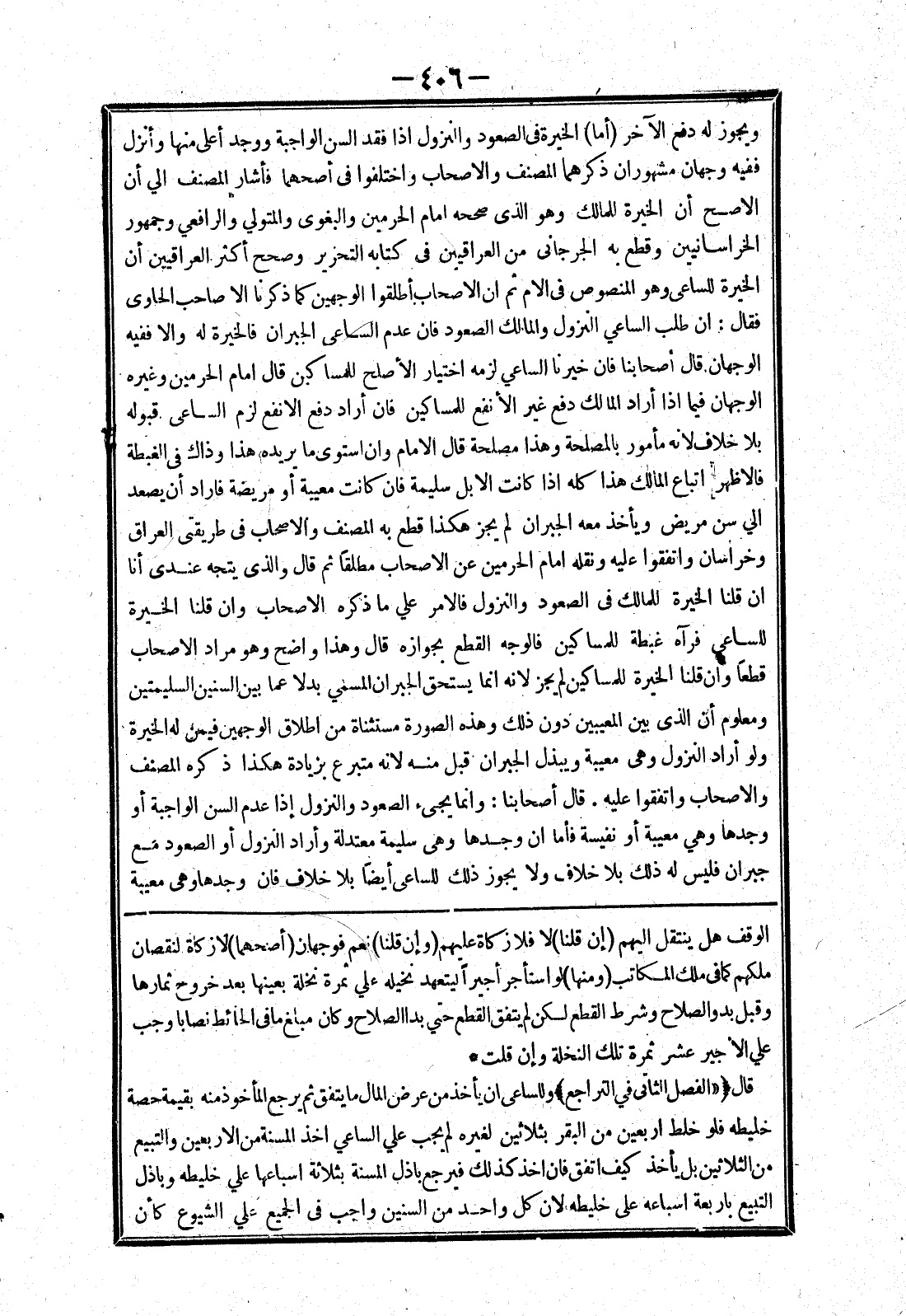 الوقف هل ينتقل إليهم (إن قلنا) لا فلا زكاة عليهم (وإن قلنا) نعم فوجهان (أصحهما) لا زكاة لنقصان ملكهم كما في ملك المكاتب (ومنها) لو استأجر اجيرا ليتعهد نخيله علي ثمرة نخلة بعينها بعد خروج ثمارها وقبل بدو الصلاح وشرط القطع لكن لم يتفق القطع حتي بدا الصلاح وكان مبلغ ما في الحائط نصابا وجب علي الاجير نصف عشر ثمرة تلك النخلة وإن قلت * قال ((الفصل الثاني في التراجع) وللساعي ان يأخذ من عرض المال ما يتفق ثم يرجع المأخوذ منه يقيمة حصة خليطه فلو خلط اربعين من البقر بثلاثين لغيره لم يجب علي الساعي اخذ المسنة من الاربعين والتبيع من الثلاثين بل يأخذ كيف اتفق فان اخذ كذلك فيرجع باذل المسنة بثلاثة اسباعها علي خليطه وباذل التبيع باربعة اسباعه على خليطه لان كل واحد من السنين واجب في الجميع علي الشيوع كأن