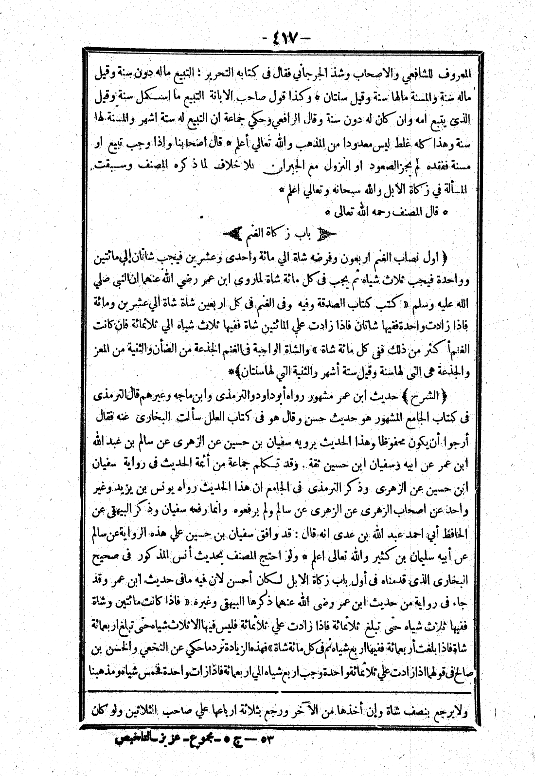 ولا يرجع بنصف شاة وإن أخذها من الآخر ورجع بثلاثة ارباعها علي صاحب الثلاثين ولو كان