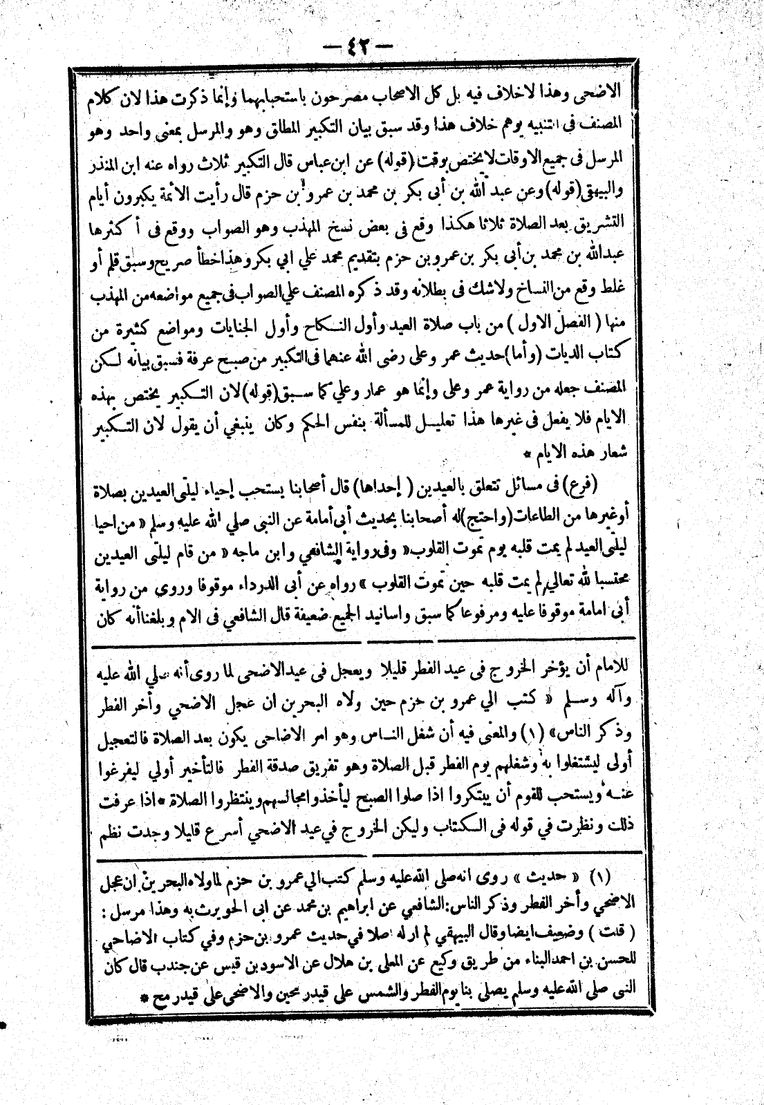 للامام أن يؤخر الخروج في عيد الفطر قليلا ويعجل في عيد الاضحى لما روى أنه صلي الله عليه وسلم (كتب الي عمرو بن حزم حين ولاه البحرين ان عجل الاضحي وآخر الفظر وذكر الناس) والمعنى فيه أن شغل الناس وهو امر الاضاحي يكون بععد الصلاة فالتعجيل أولى ليشتغلوا به وشغلهم يوم الفطر قبل الصلاة وهو تفريق صدقة الفطر فالتأخير أولي ليفرغوا عنه ويستحب للقوم أن يبتكروا إذا صلوا الصبح ليأخذوا مجالسهم وينتظروا الصلاة إذا عرفت ذلك ونظرت في قوله في الكتاب وليكن الخروج في عيد الاضحي أسرع قليلا وجدت نظم