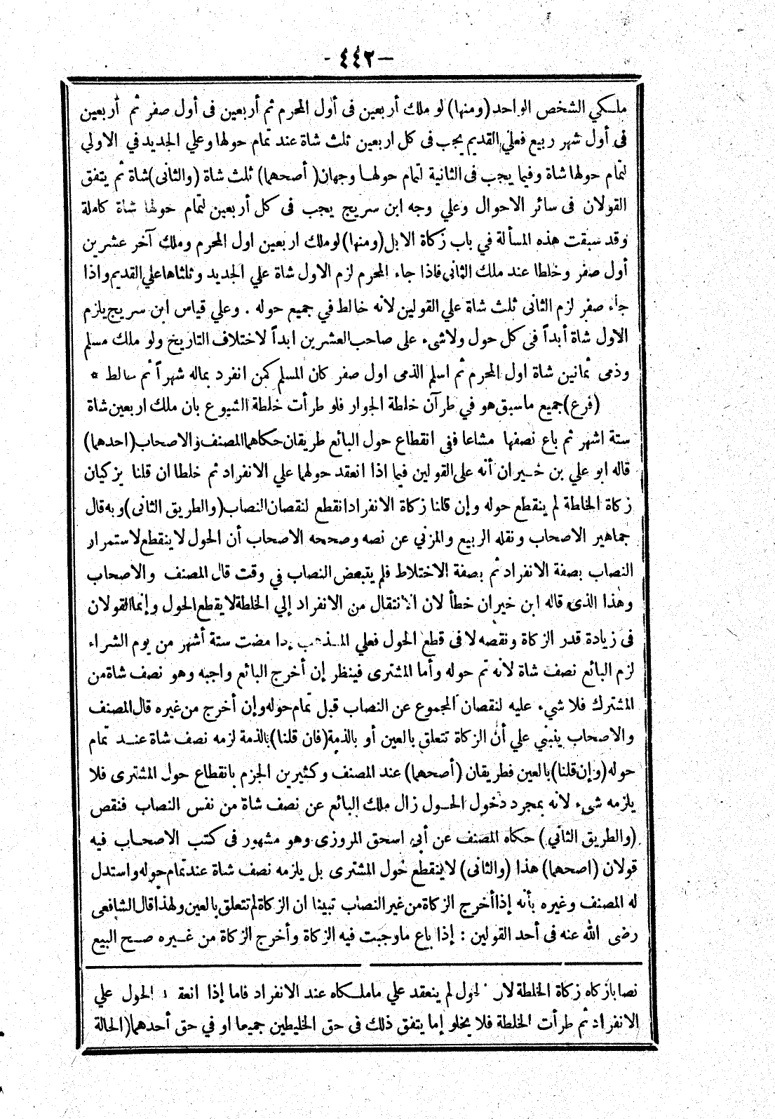نصابا زكاة زكاة الخلطة لان الحول لم ينعقد علي ما ملكاه عند الانفراد فاما إذا انعقد الحول علي الانفراد ثم طرأت الخلطة فلا يخلو إما يتفق ذلك في حق الخليطين جميعا أو في حق أحدهما (الحالة