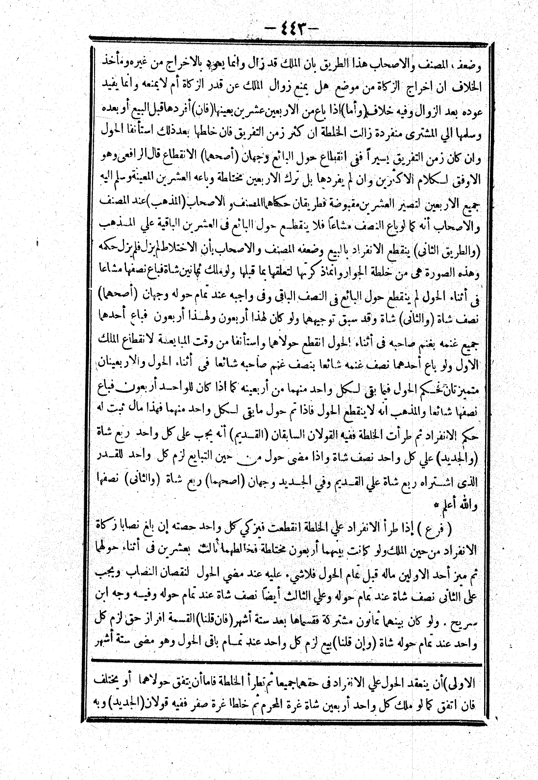 الاولى) أن ينعقد الحلول علي الانفراد في حقهما جميعا ثم تطرأ الخلطة فاما أن يفق حولاهما أو يختلف فان انفق كما لو ملك كل واحد أربعين شاة غرة المحرم ثم خلطا غرة صفر ففيه قولان (الجديد) وبه
